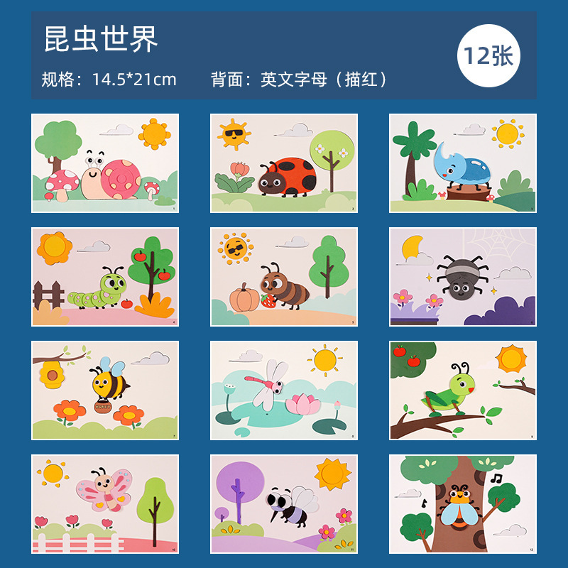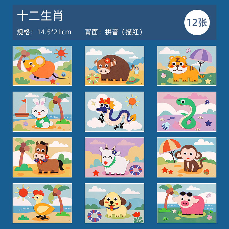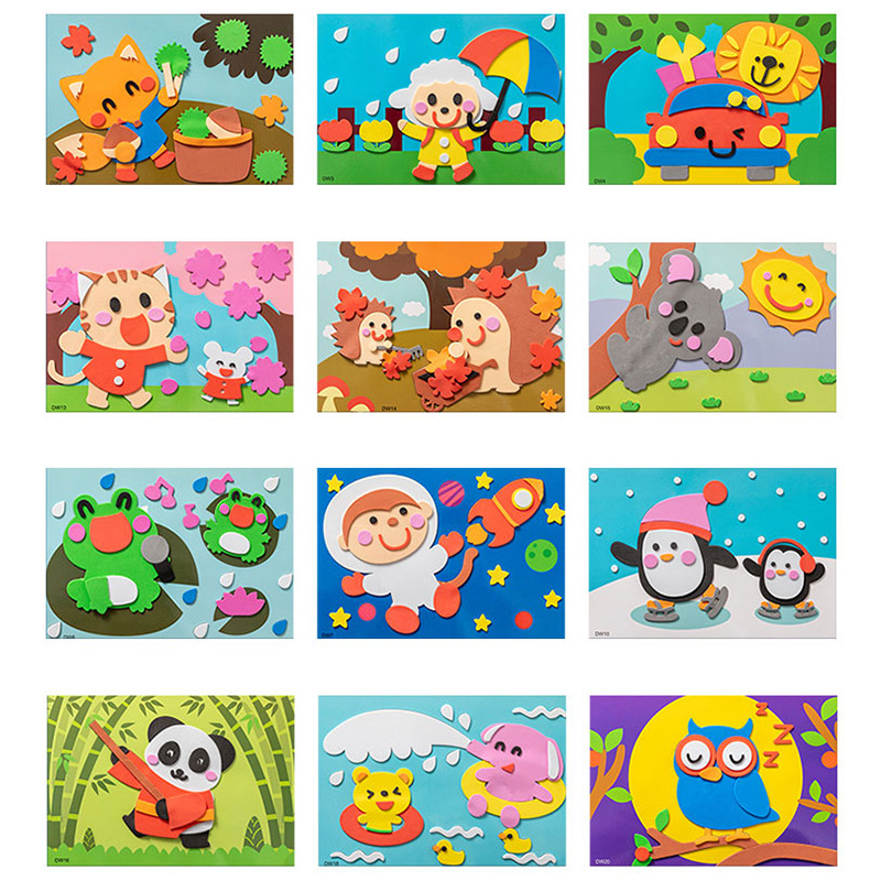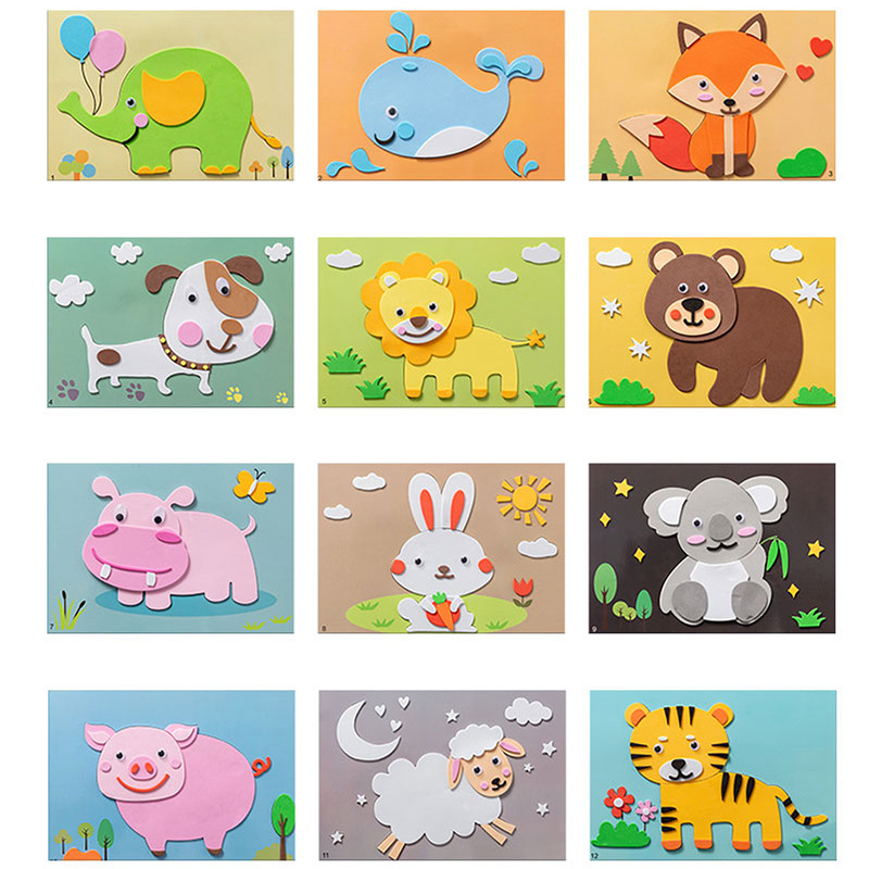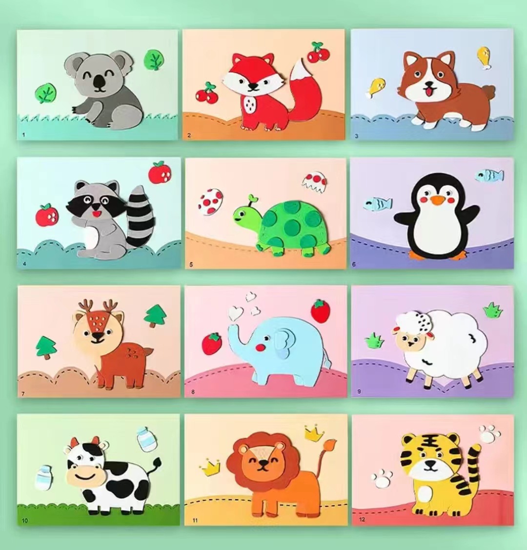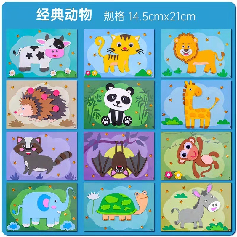 어린이 동물 3D EVA 스티커 그림 유치원 소년과 소녀 교육 완구 수제 DIY 재료 가방