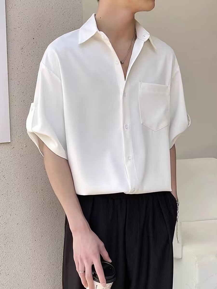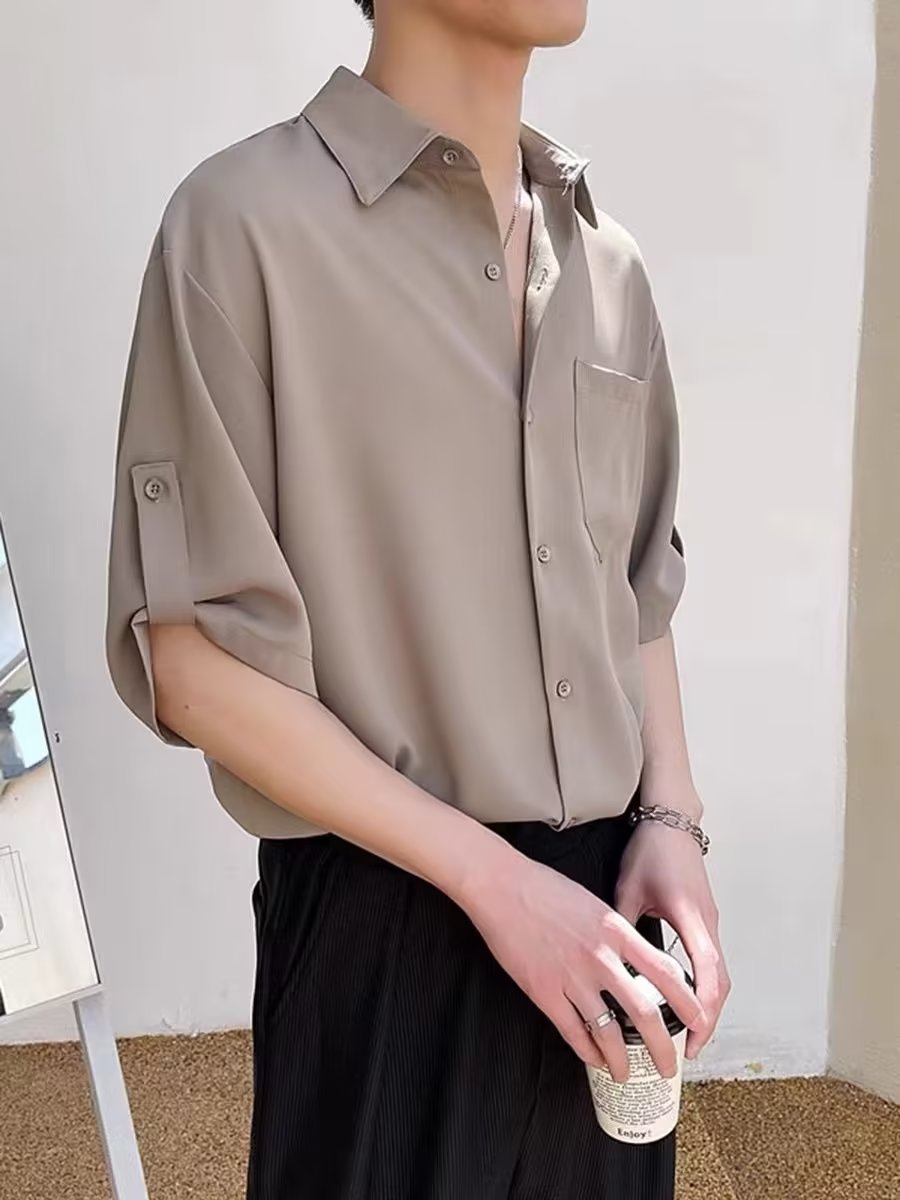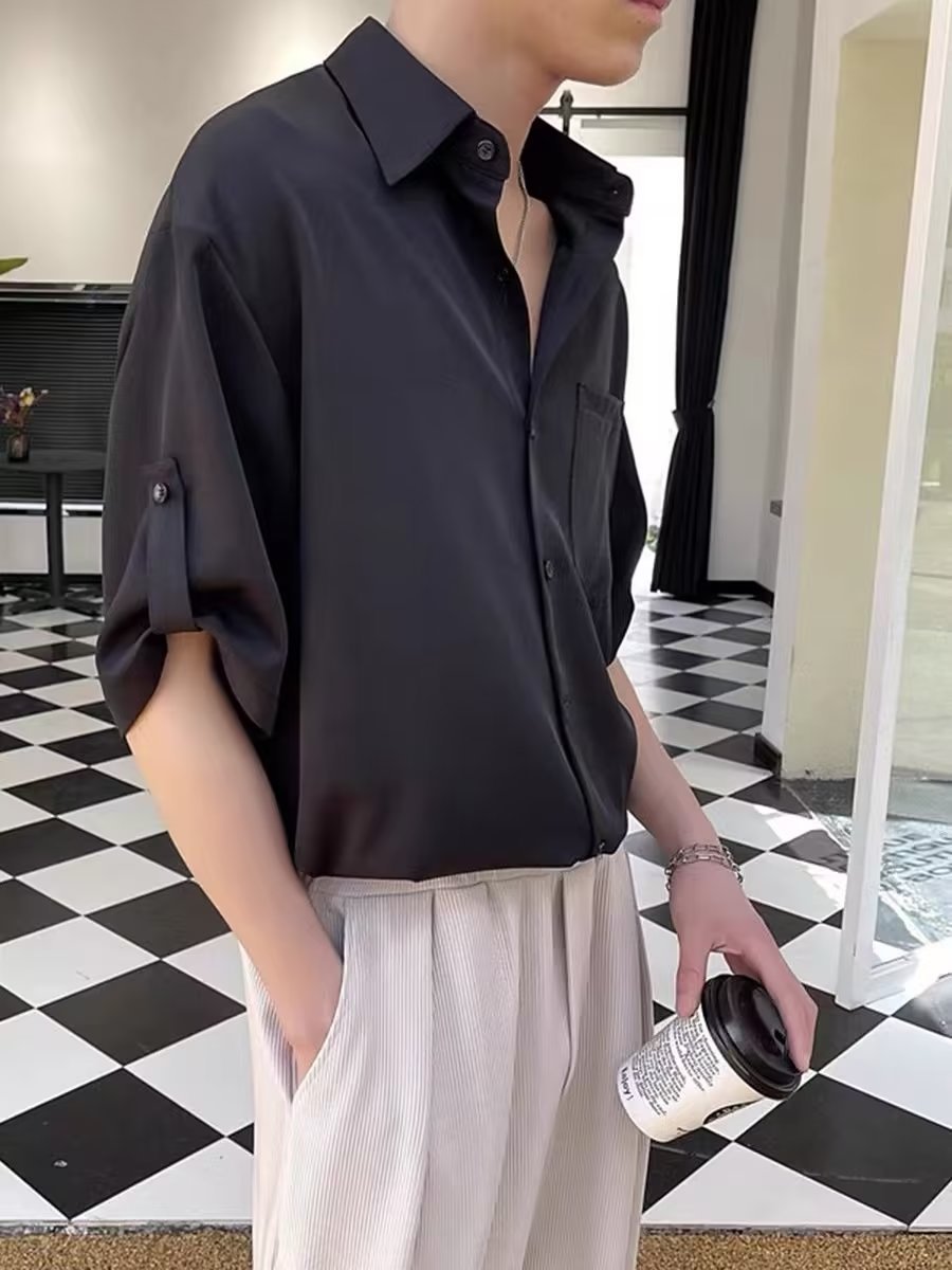 셔츠 남성용 반팔 한국 유행 남성용 7 소매 셔츠 가벼운 성숙한 스타일 슈아이 여름 아이스 실크 고급 탑스토어 가기
