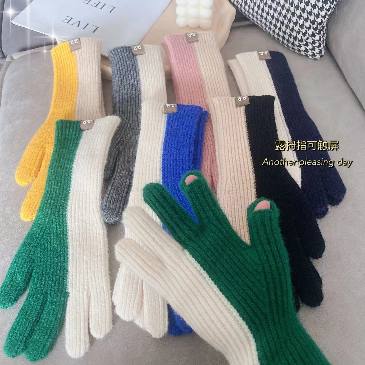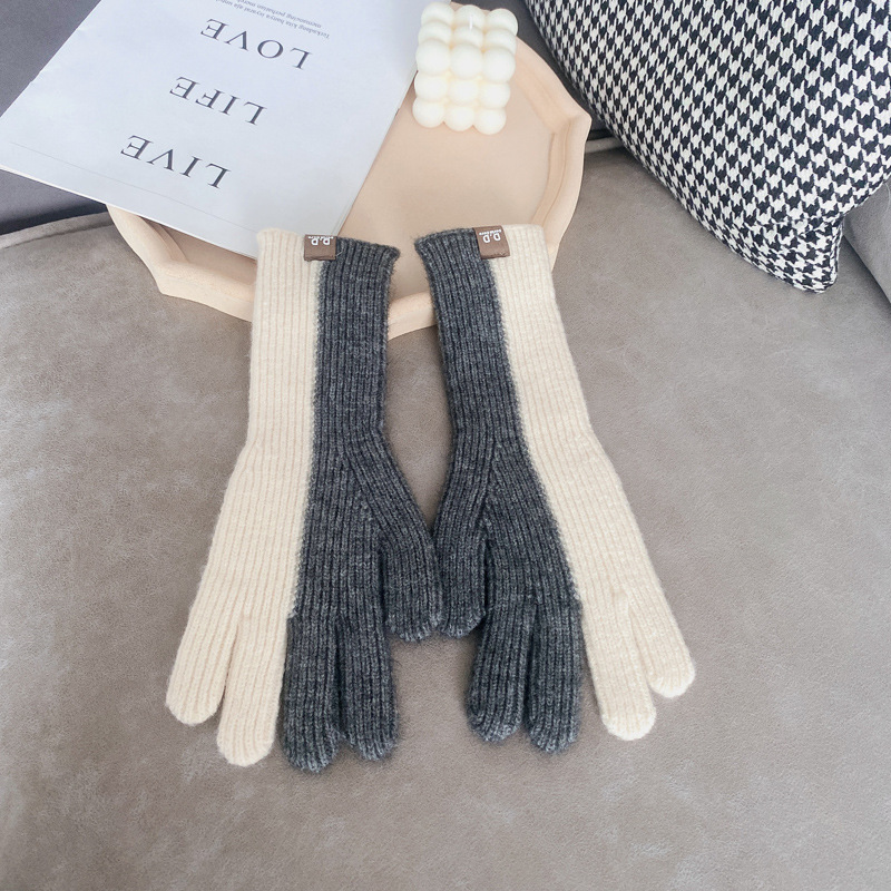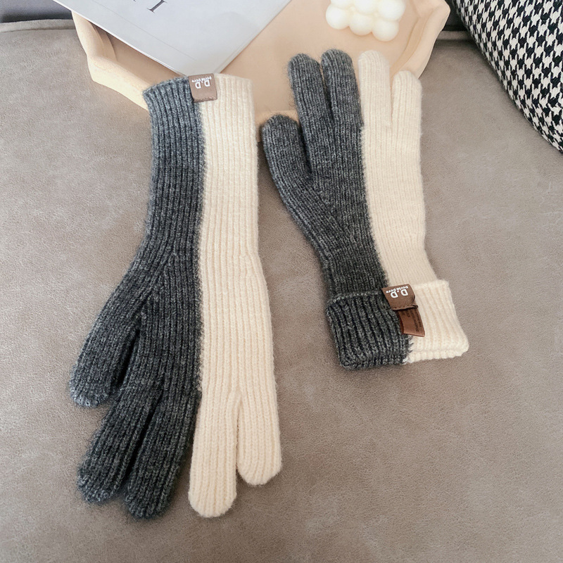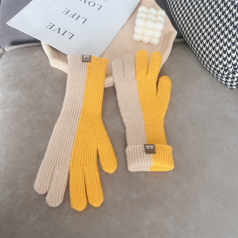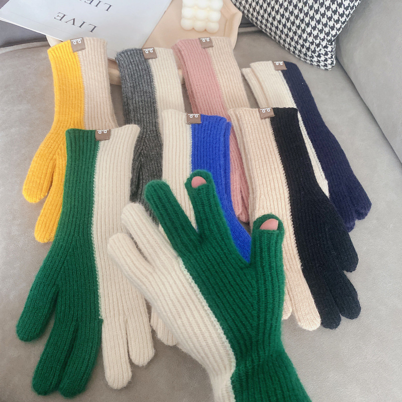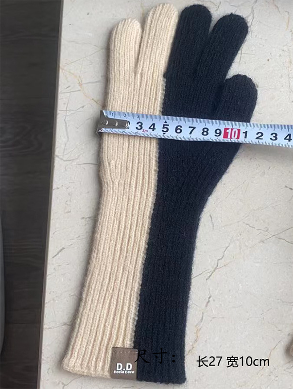 가을과 겨울 귀여운 양모 니트 장갑 여성용 이슬 두 손가락 겨울 사이클링 따뜻한 방한 2 색 분할 손가락 커플스토어 가기