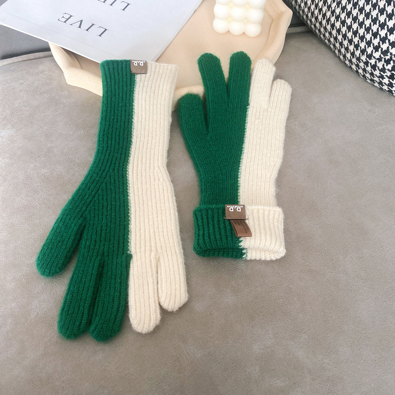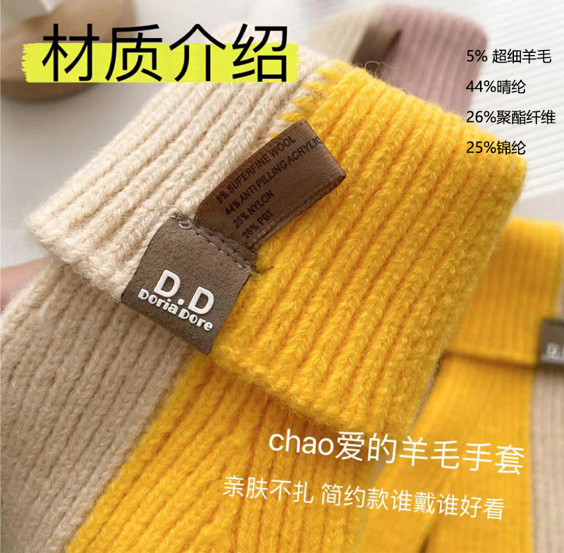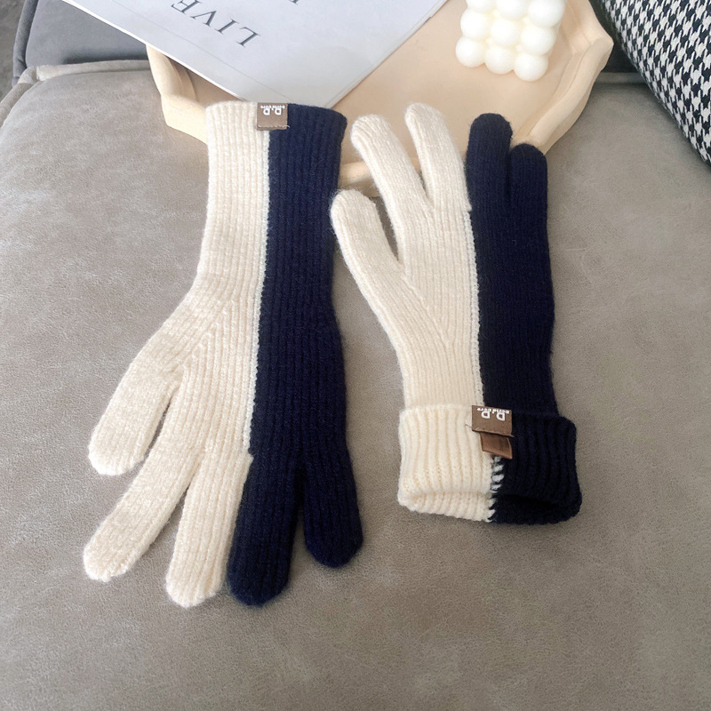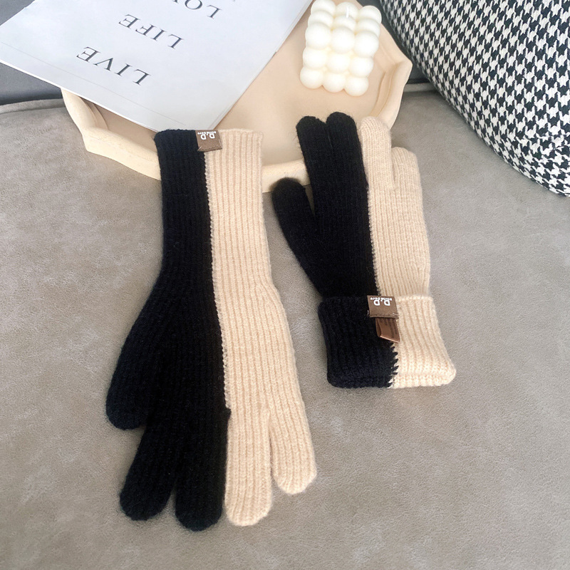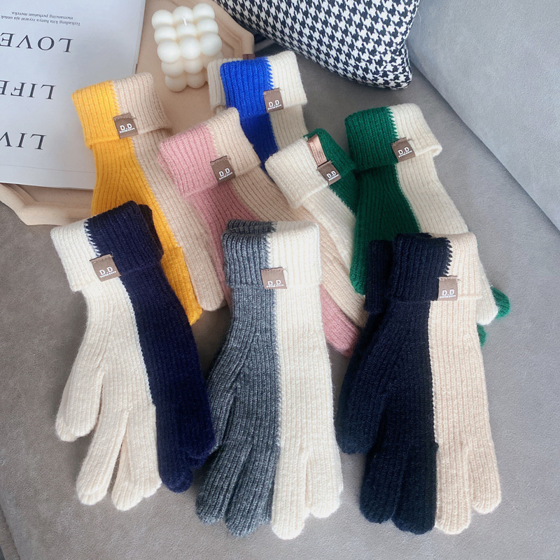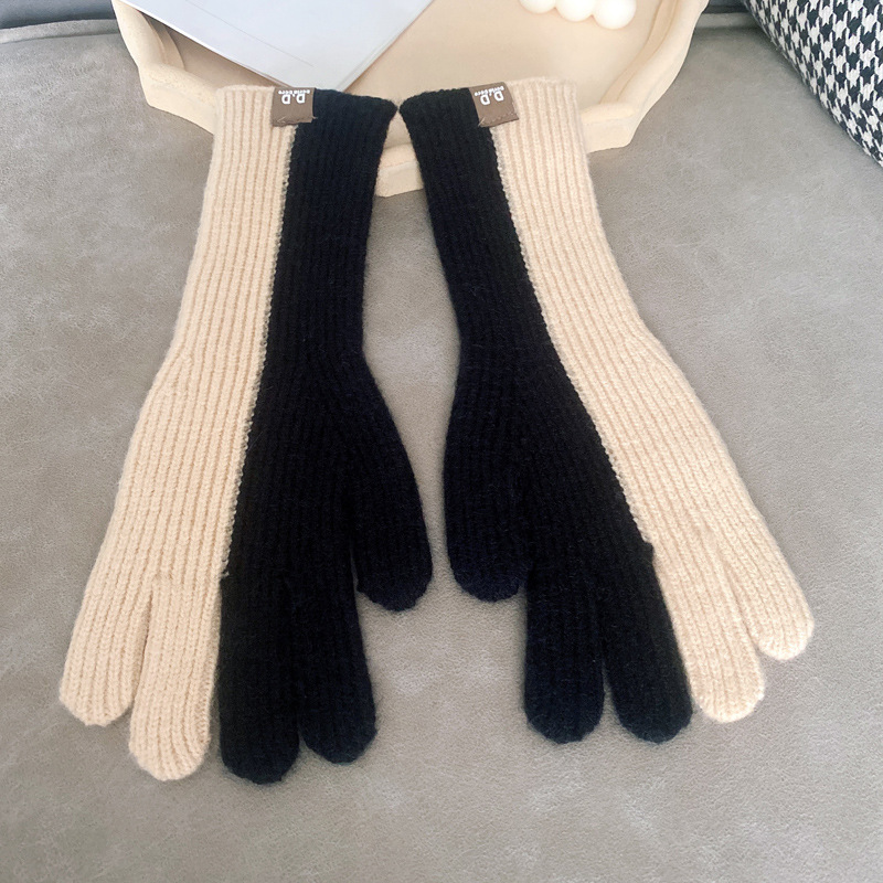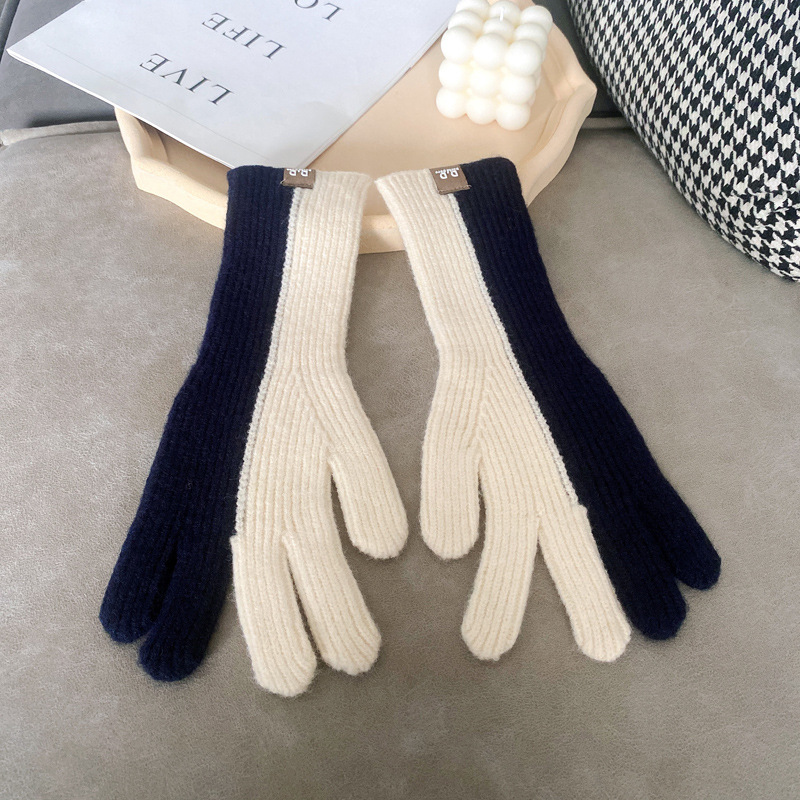 가을과 겨울 귀여운 양모 니트 장갑 여성용 이슬 두 손가락 겨울 사이클링 따뜻한 방한 2 색 분할 손가락 커플스토어 가기