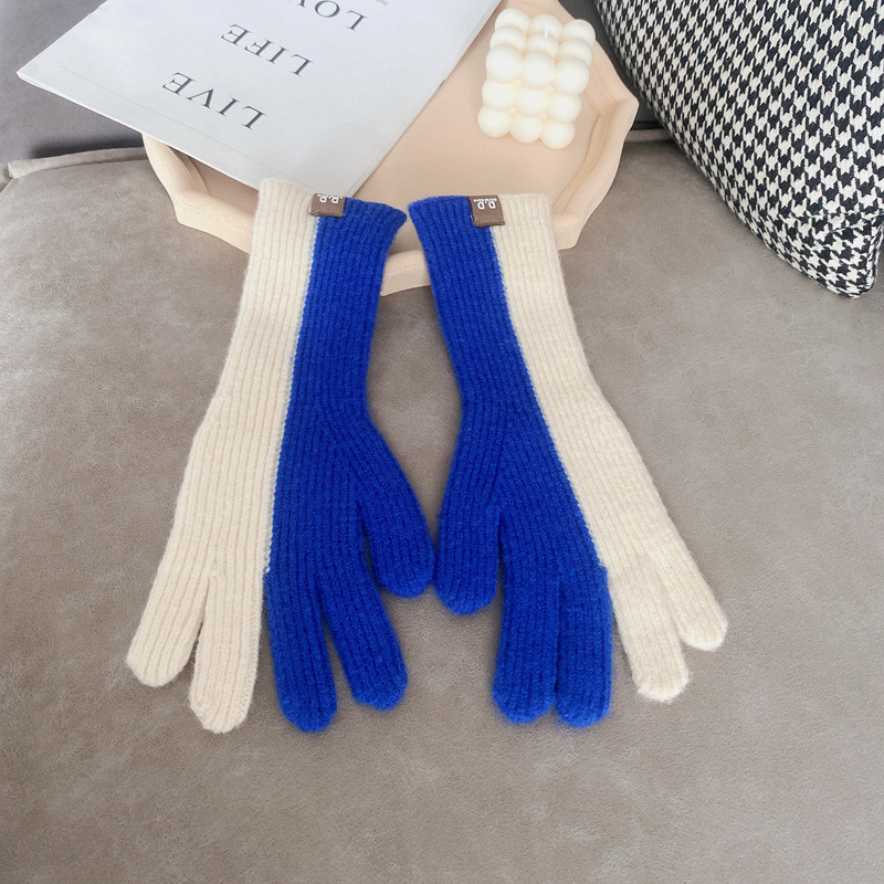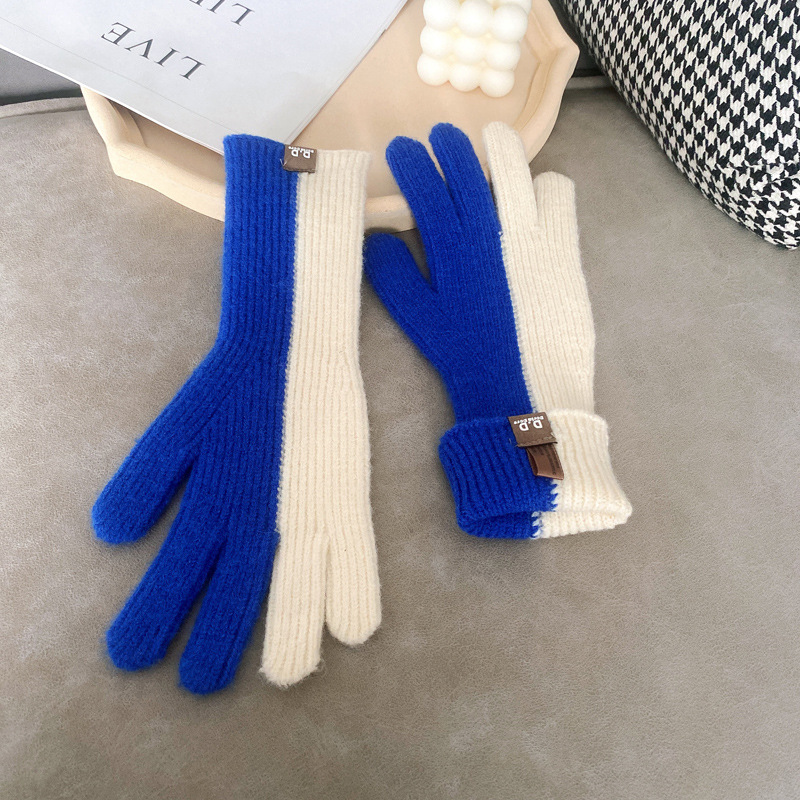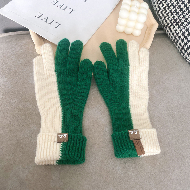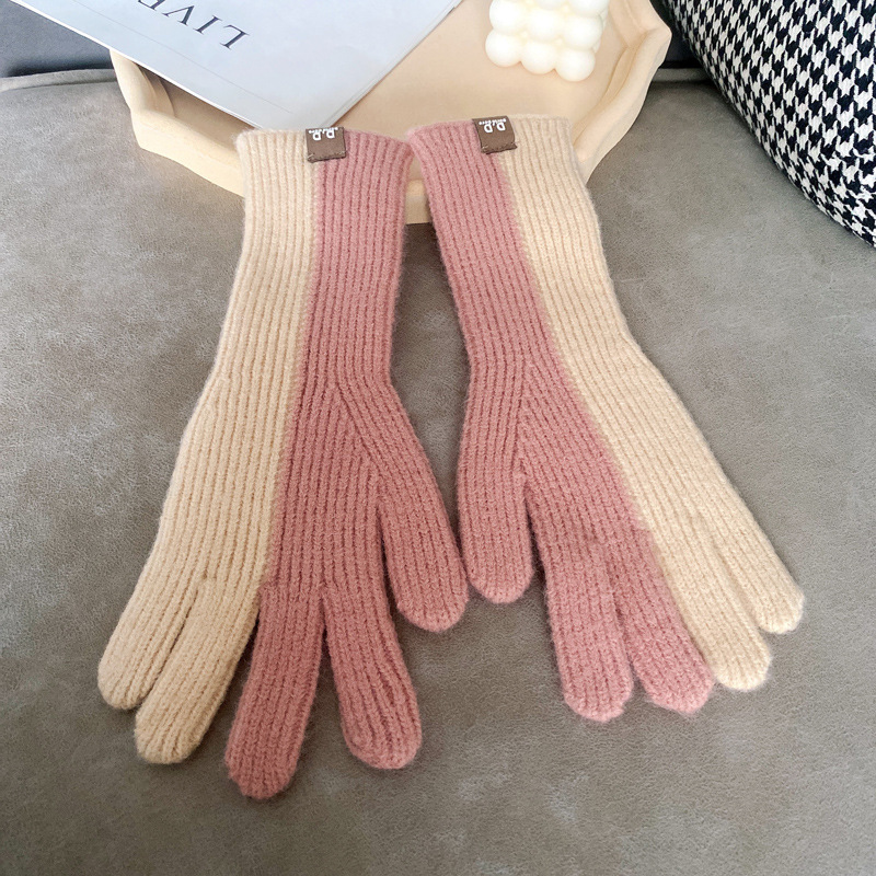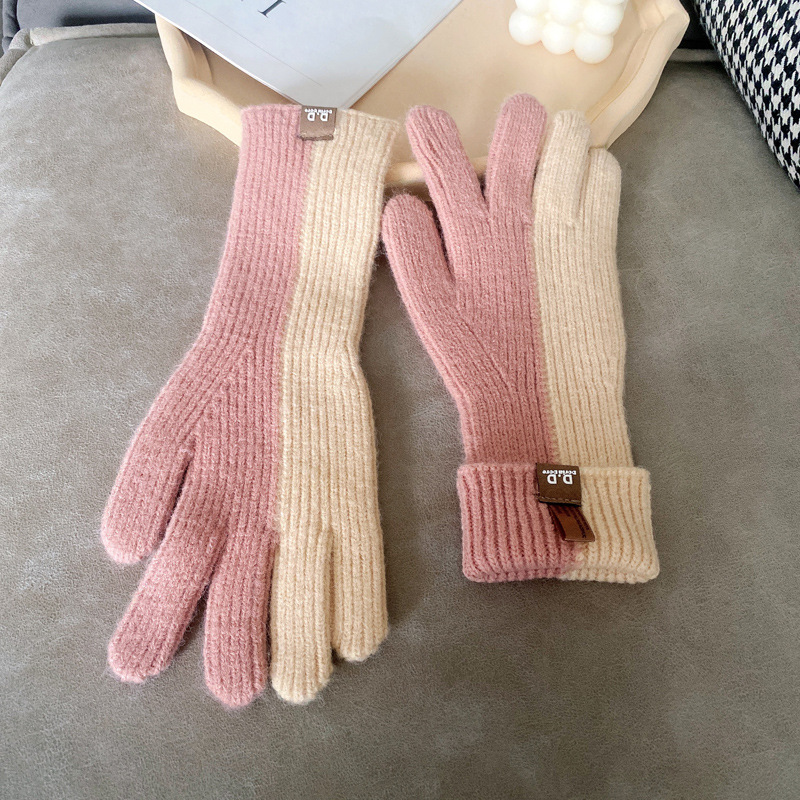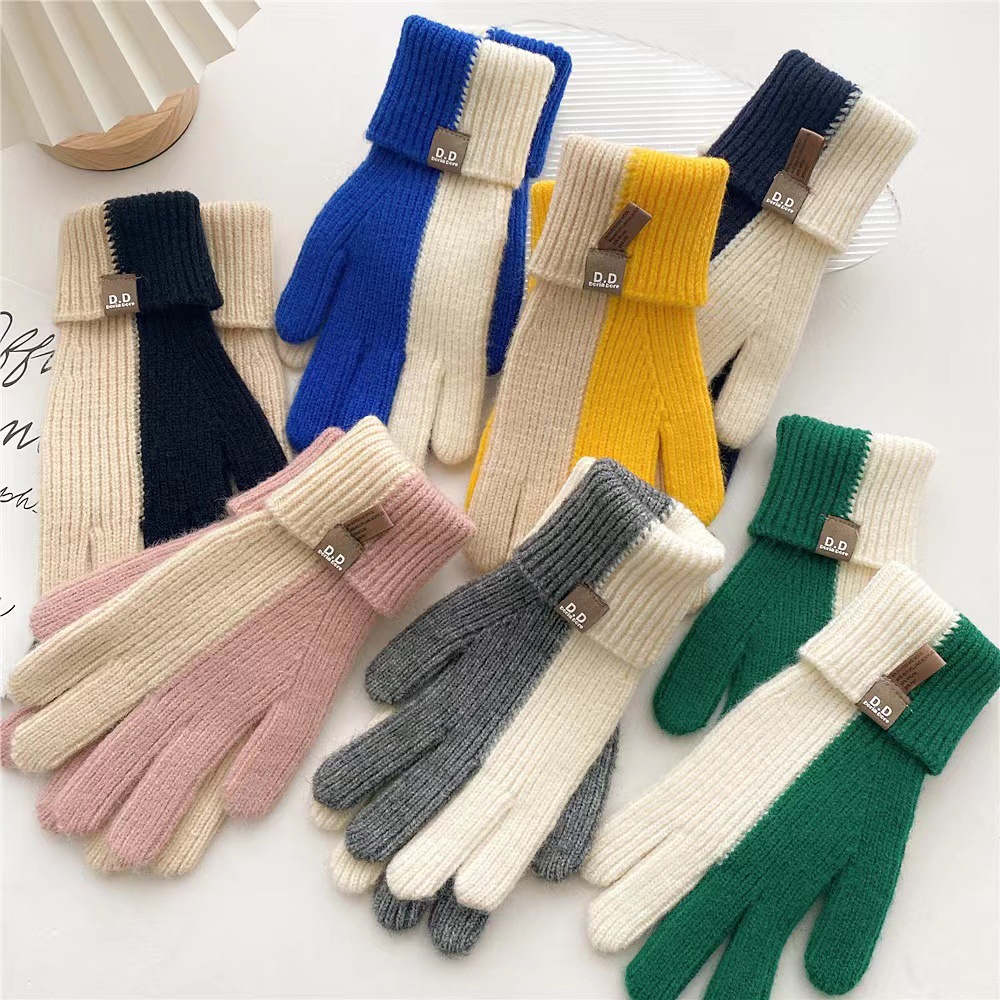 가을과 겨울 귀여운 양모 니트 장갑 여성용 이슬 두 손가락 겨울 사이클링 따뜻한 방한 2 색 분할 손가락 커플스토어 가기