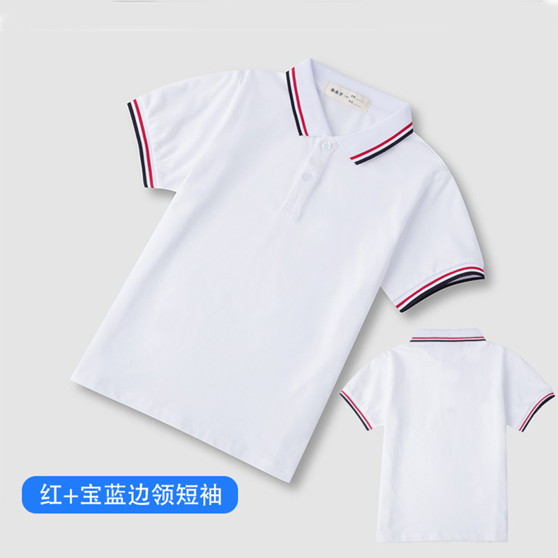 초등학교 소년 화이트 폴로 셔츠 면 봄과 가을 옷깃 티셔츠 어린이와 소녀 긴 소매 티셔츠 교복베이스