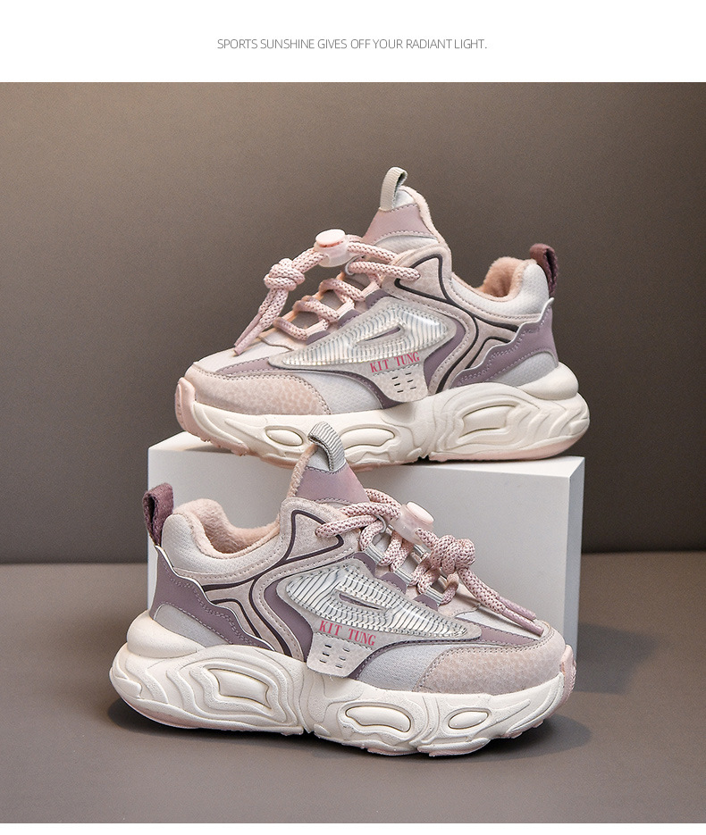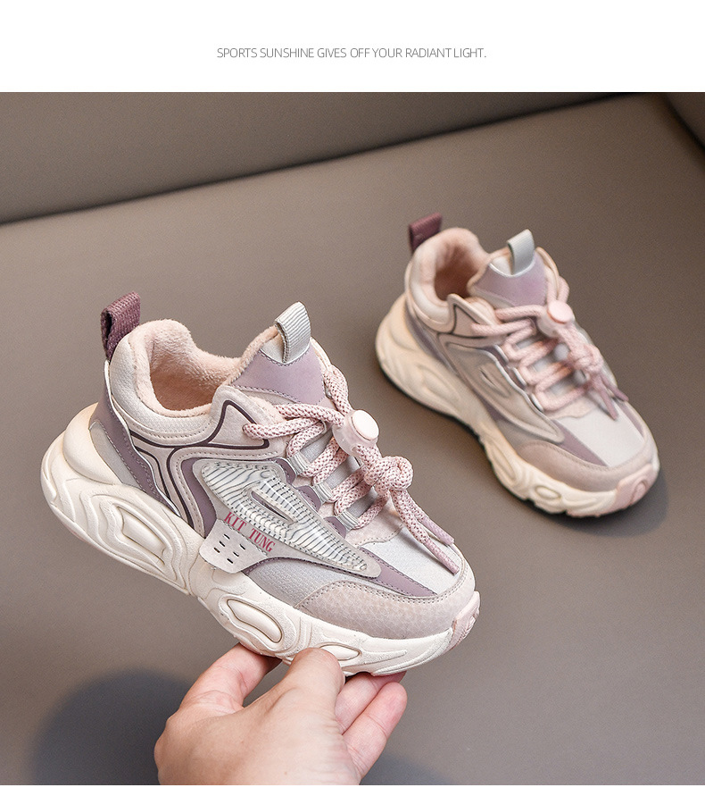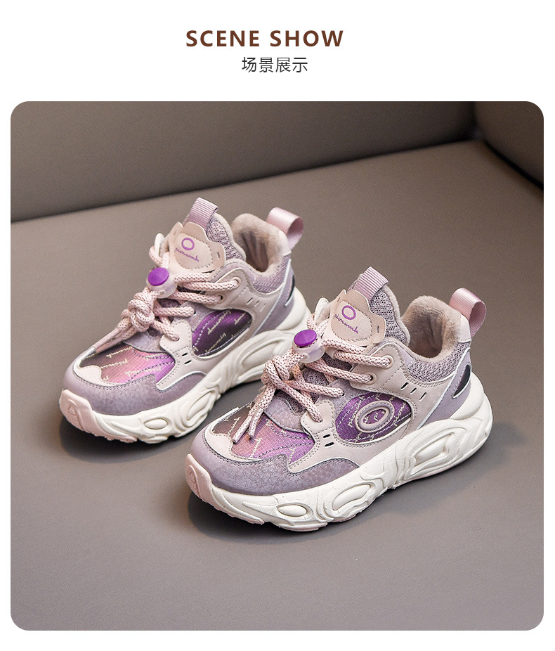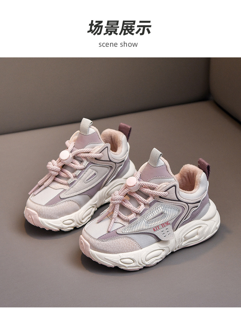 여자 신발 2025 가을, 겨울 새로운 어린이 스포츠 신발 방수 어린 소녀 캐주얼 플러스 벨벳 아빠 신발 도매