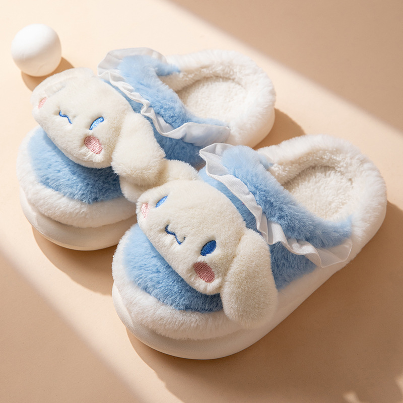 난보 완 어린이 산리오 면 슬리퍼 가을과 겨울 소녀 귀여운 공주 실내 미끄럼 방지 큰 귀 개 부모-자식 슬리퍼