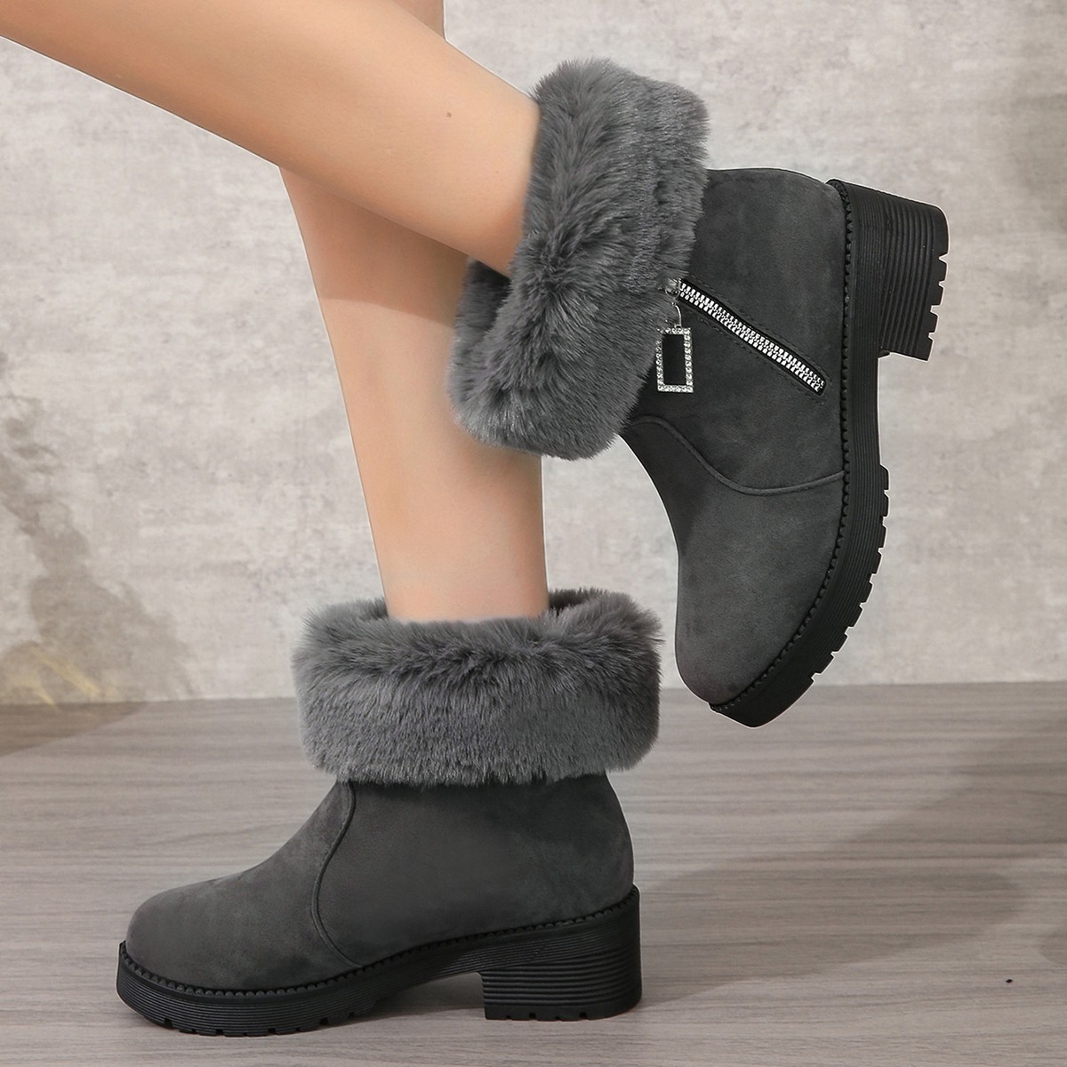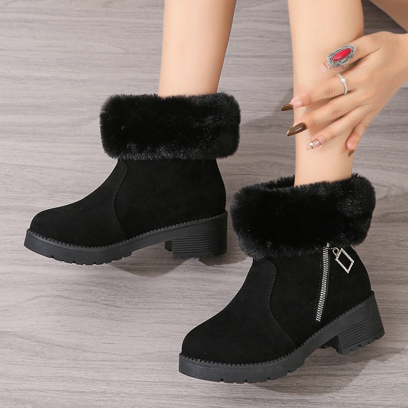 대외 무역 2023 가을과 겨울 새로운 패션 스노우 부츠 여성의 기모 따뜻한 유럽과 미국의 짧은 부츠 여성의 두꺼운 두꺼운 뒤꿈치 여성 신발