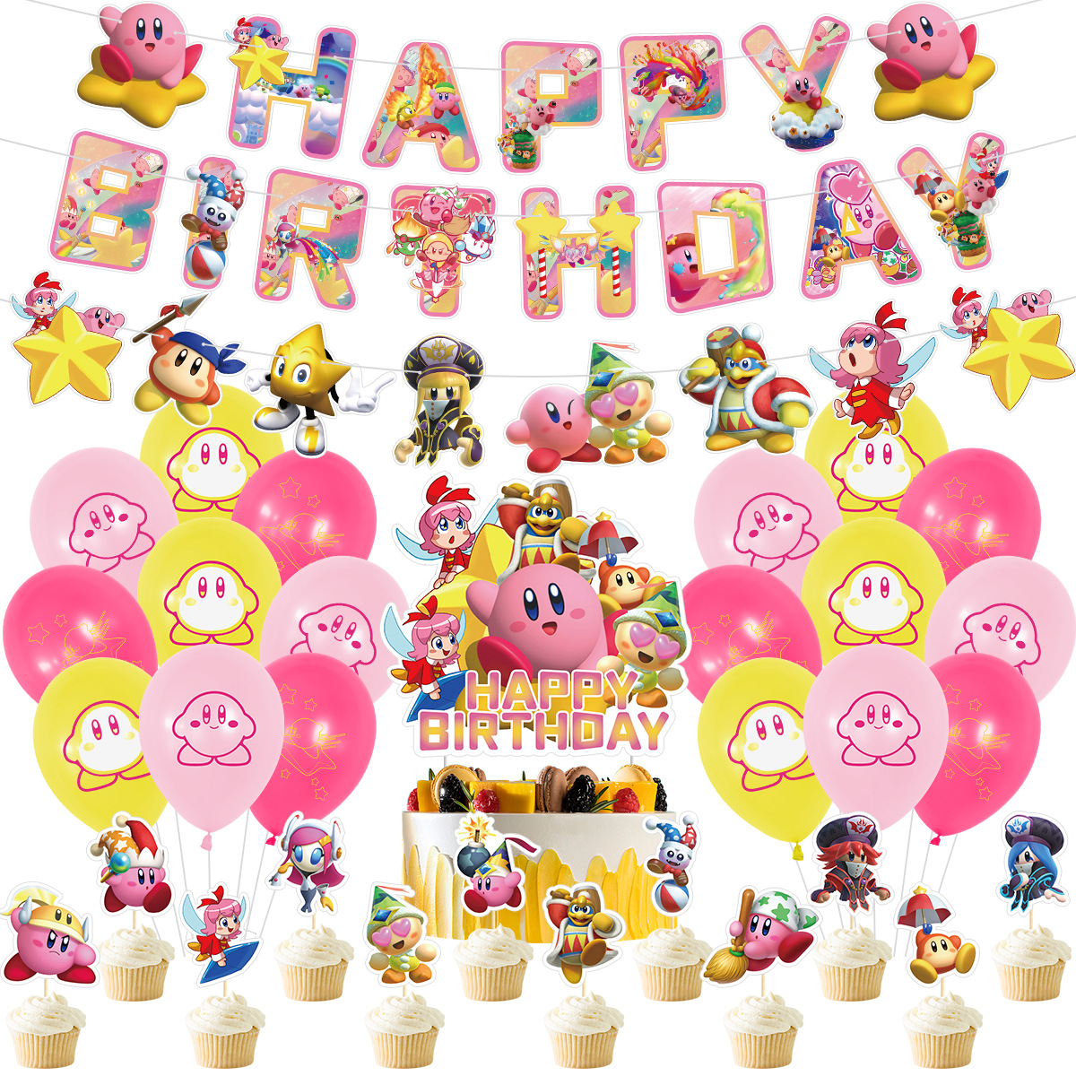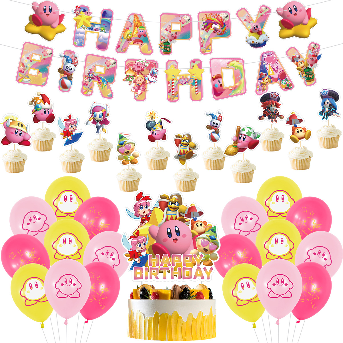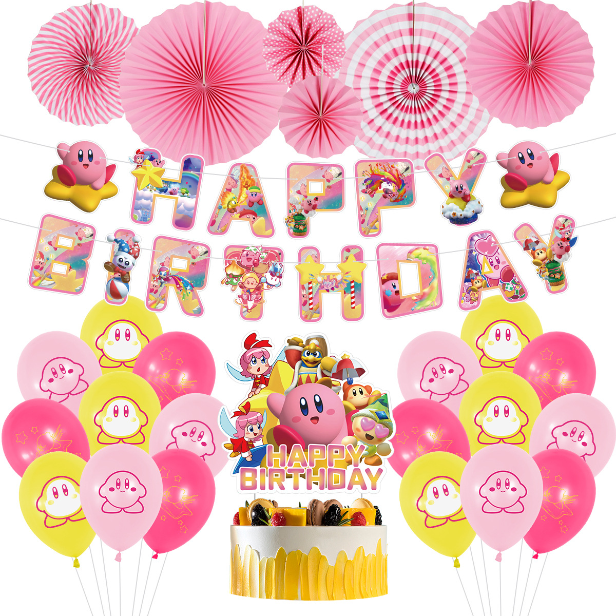 品名:星之卡比主题生日派对背景装饰套装拉旗插旗插牌乳胶气球