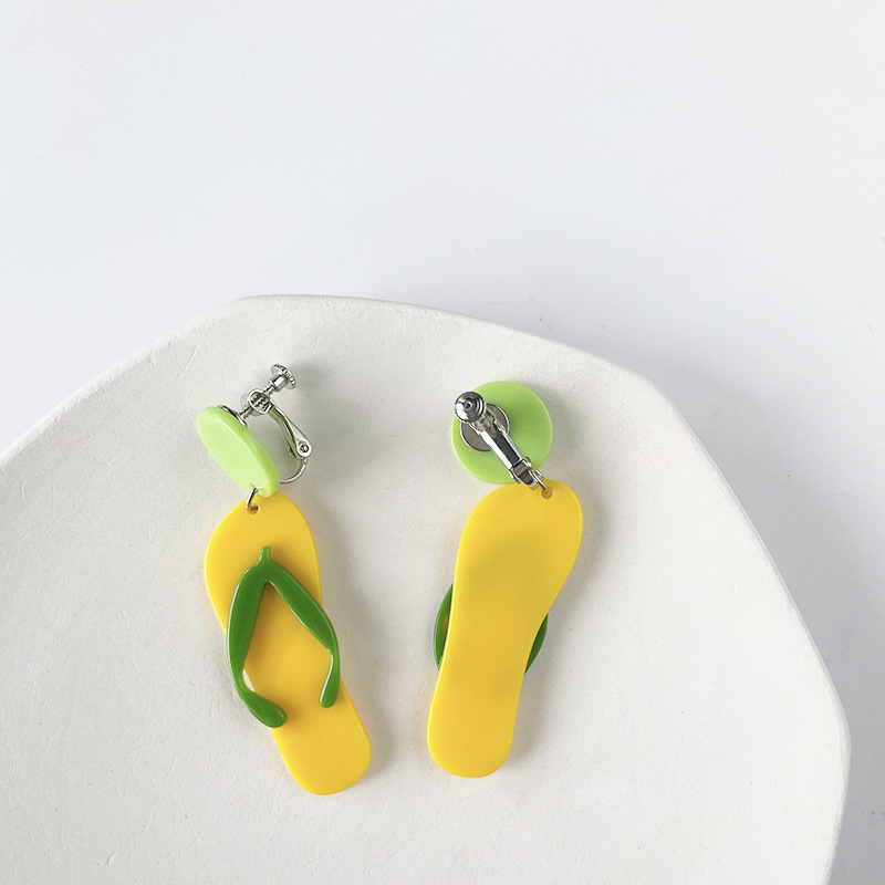 신선하고 귀여운 스타일 틈새 디자인 슬리퍼 실버 바늘 귀걸이 재미있는 성격 플립 귀 클립 여성