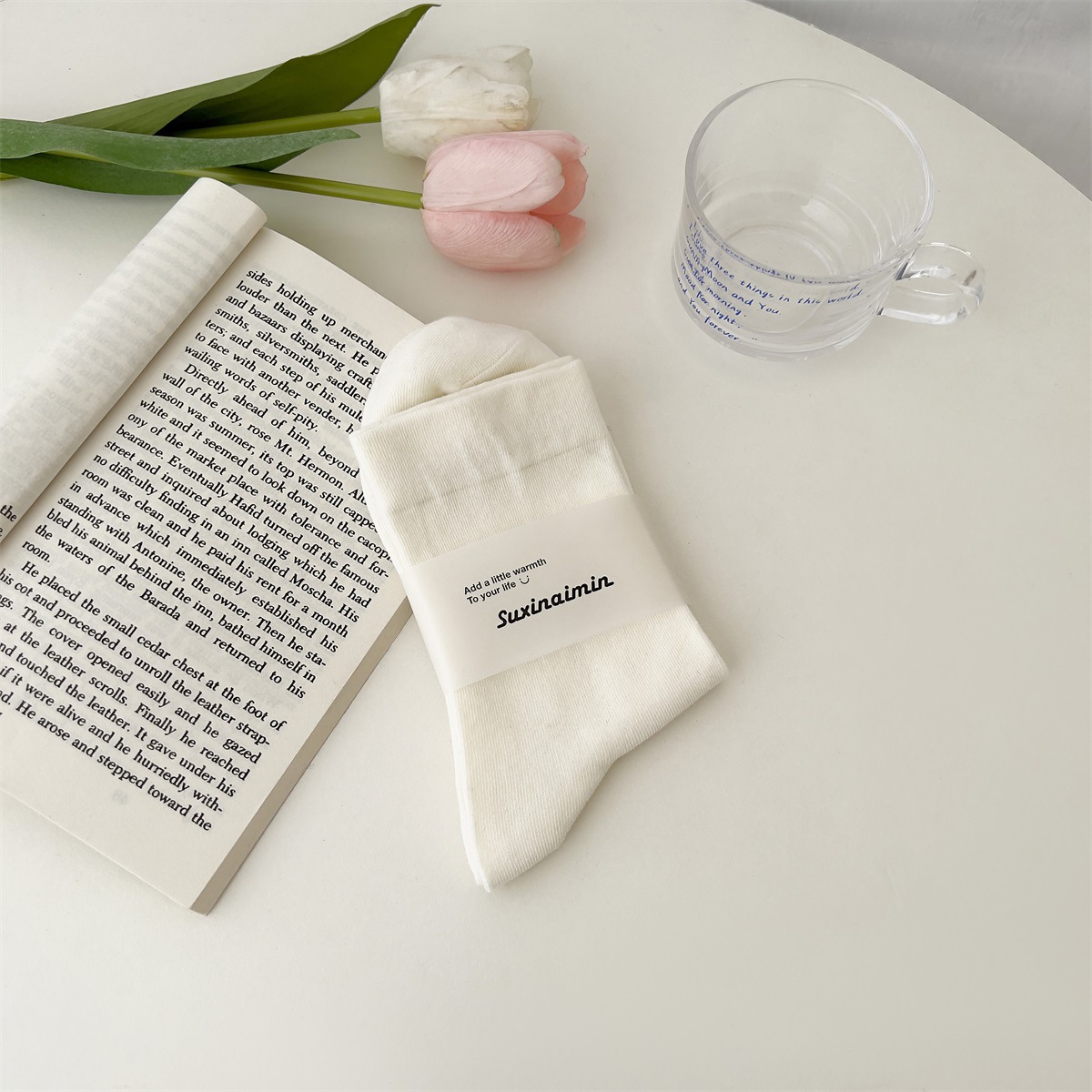 양말 여성용 새로운 한국식 젠틀 루즈한 중간 길이 양말 일본식 in 트렌디한 아카데믹 스타일 핑크 부드러운 여아 면 양말