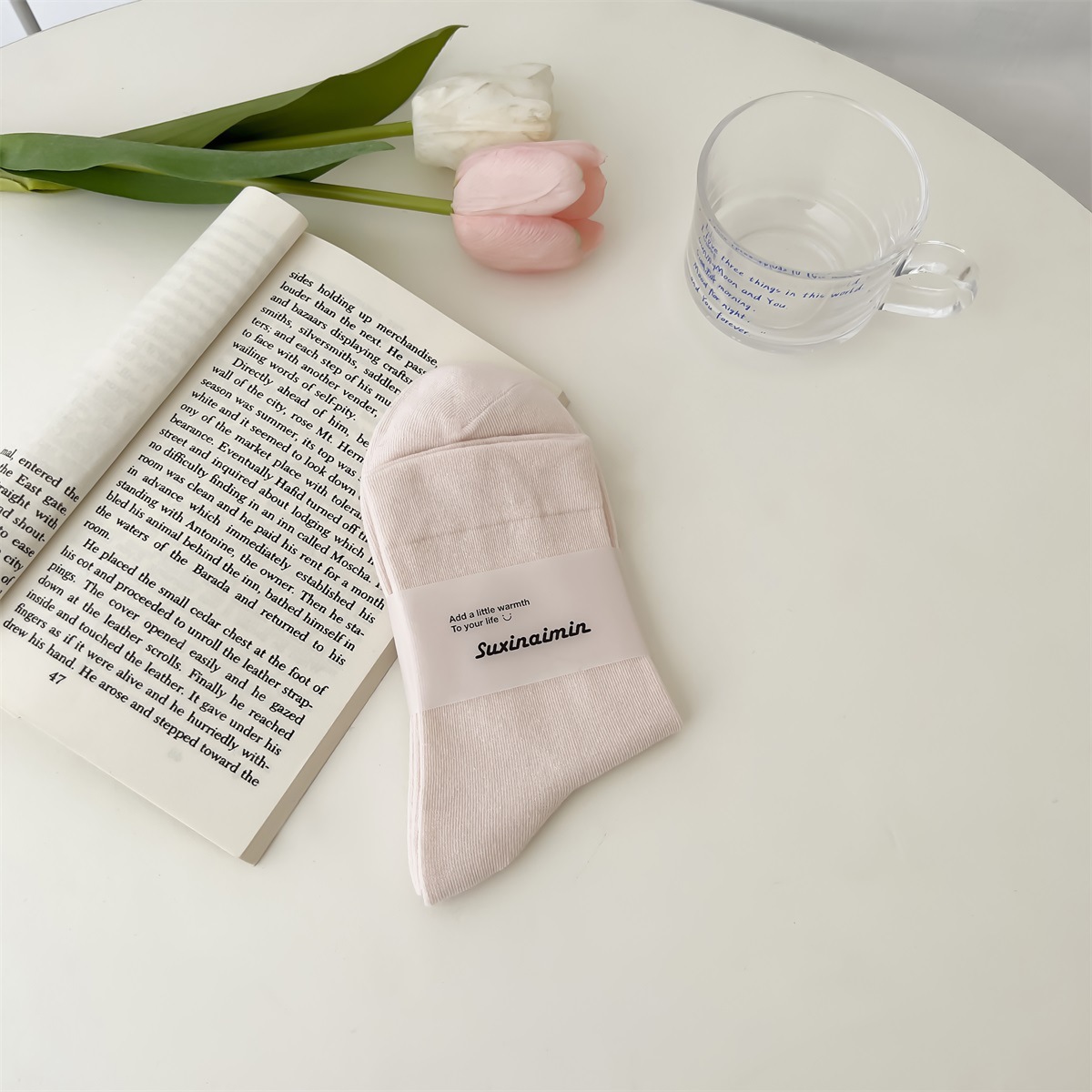 양말 여성용 새로운 한국식 젠틀 루즈한 중간 길이 양말 일본식 in 트렌디한 아카데믹 스타일 핑크 부드러운 여아 면 양말스토어 가기