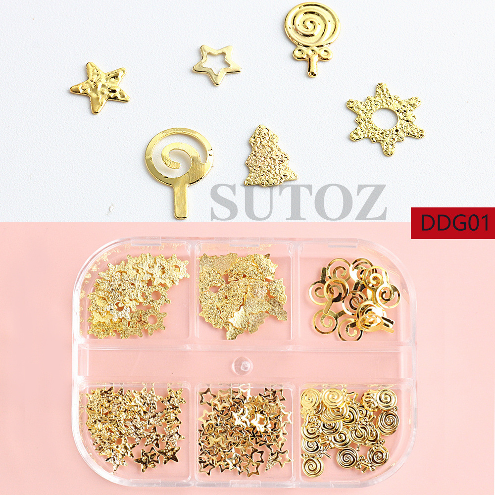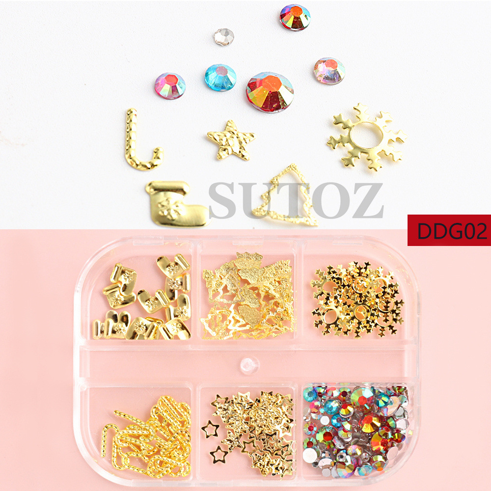 2022 크로스 보더 새로운 네일 아트 쥬얼리 6 그리드 판타지 플랫 다이아몬드 골든 눈송이 크리스마스 시리즈 네일 아트 시트스토어 가기