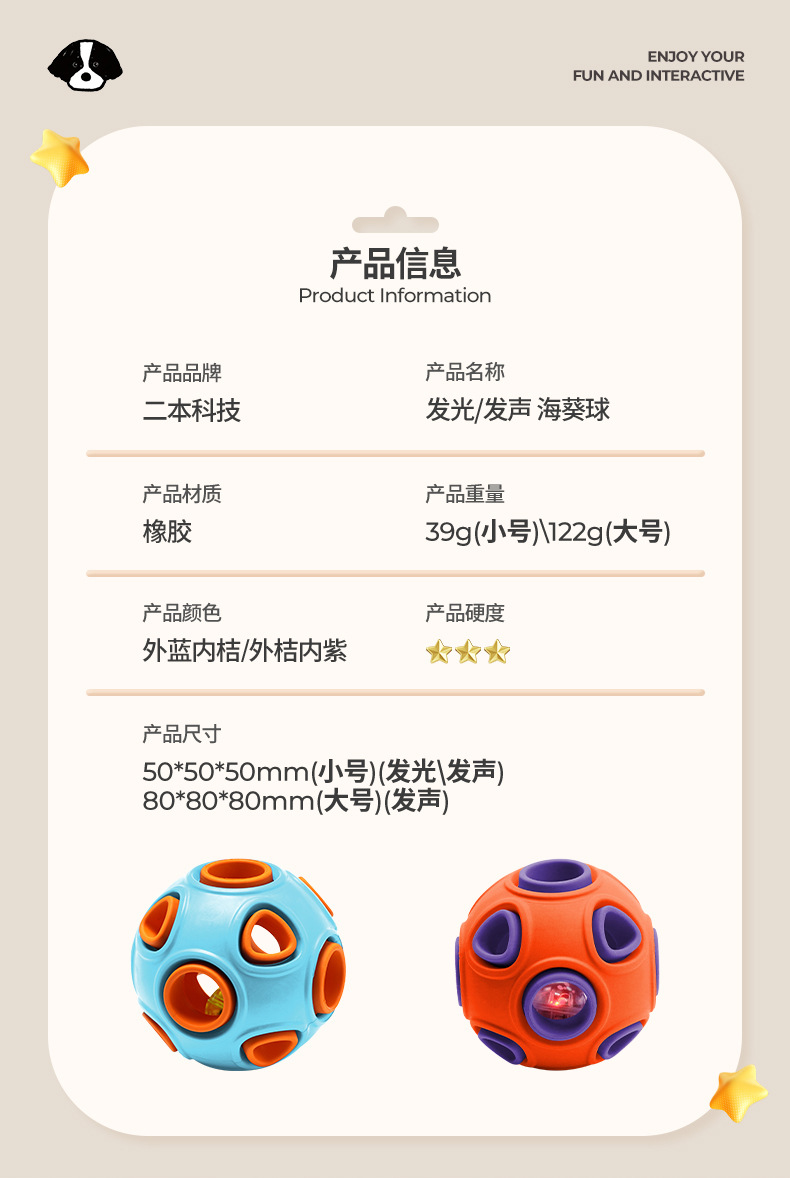 可发声发光双层狗狗玩具球磨牙洁齿漏食藏食宠物玩具环保天然橡胶