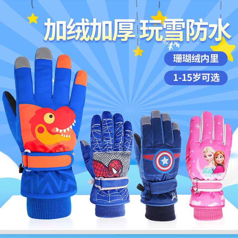 어린이 장갑 겨울 소년 방수 따뜻한 장갑 만화 스키 장갑 기모 따뜻한 눈 여성 겨울