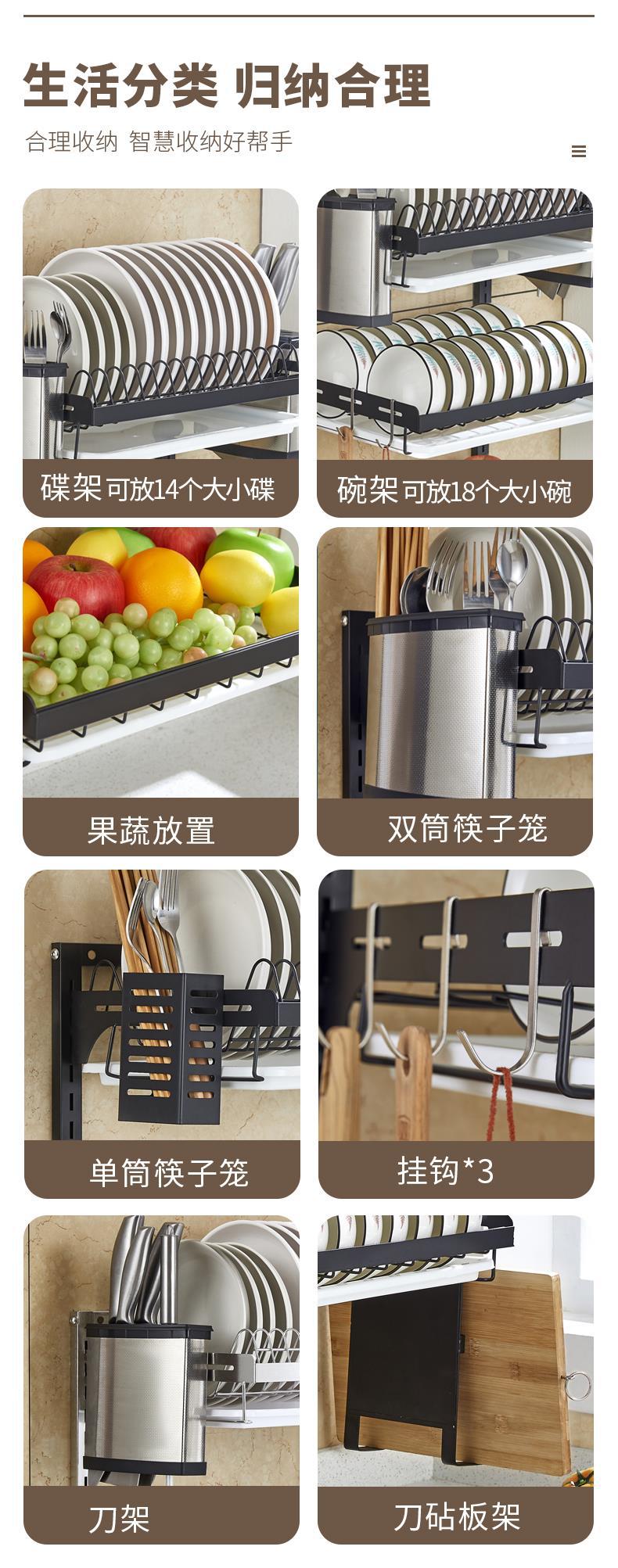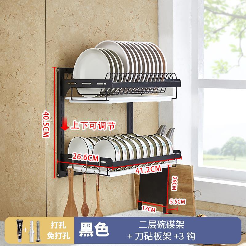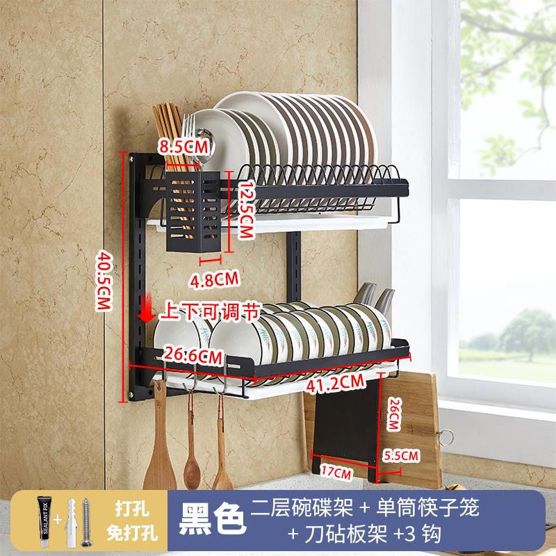 • 행잉 월 [블랙] 2 층 접시 선반 + 젓가락 케이지 + 나이프 도마 선반