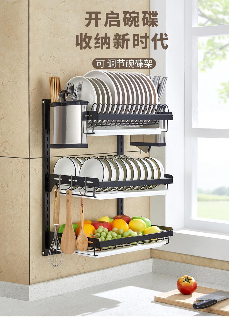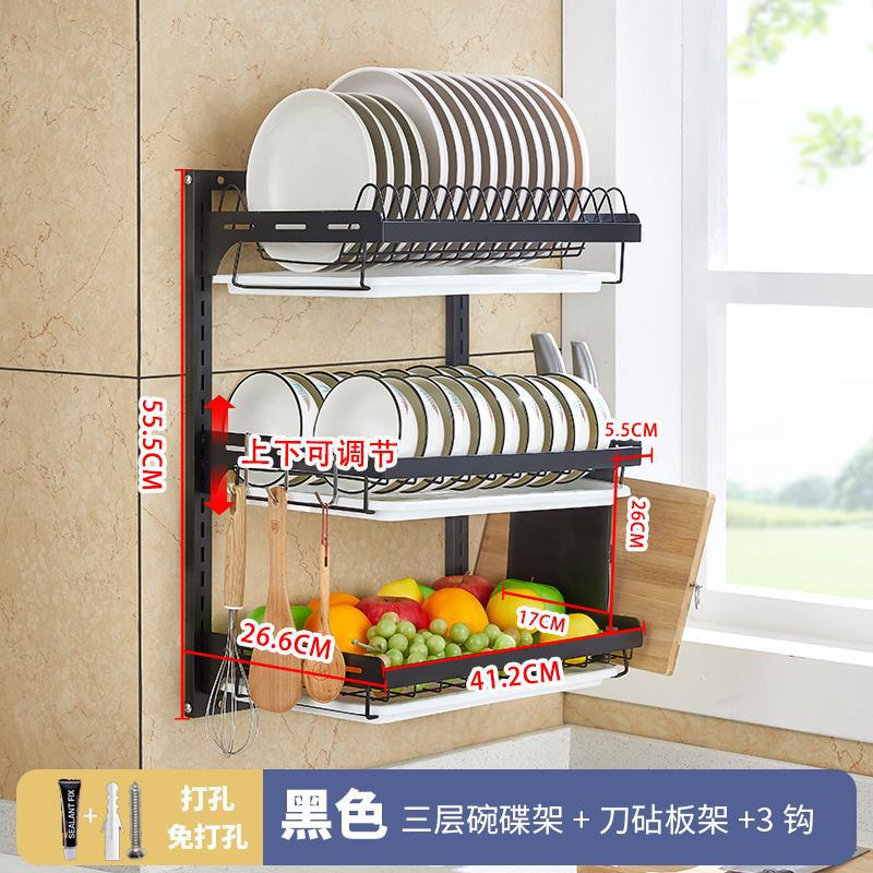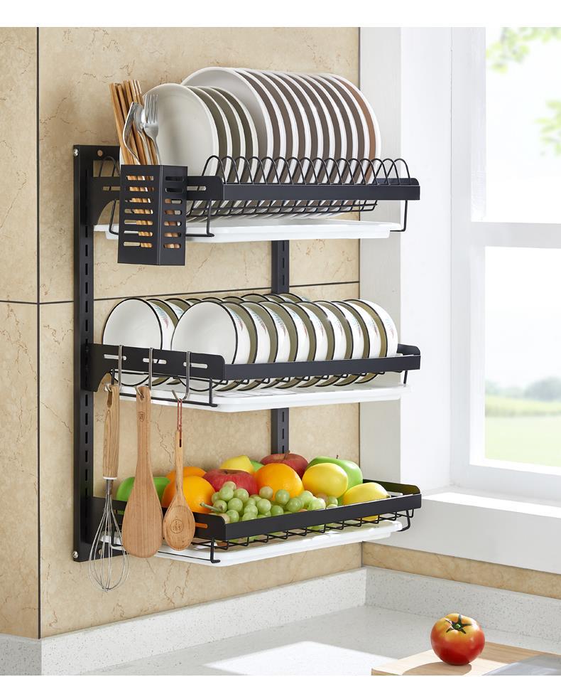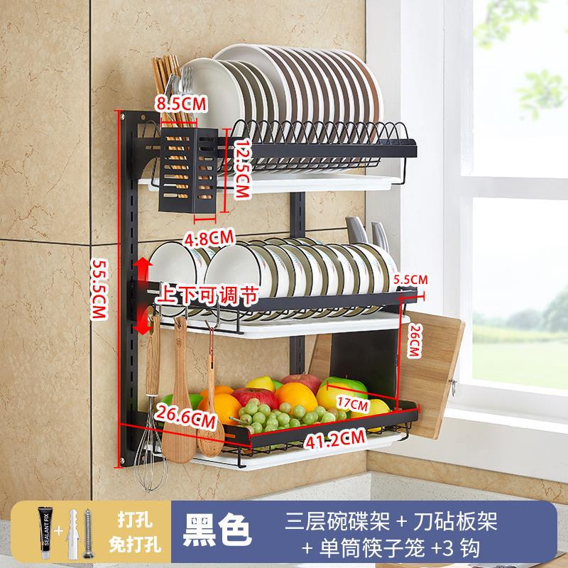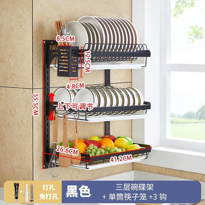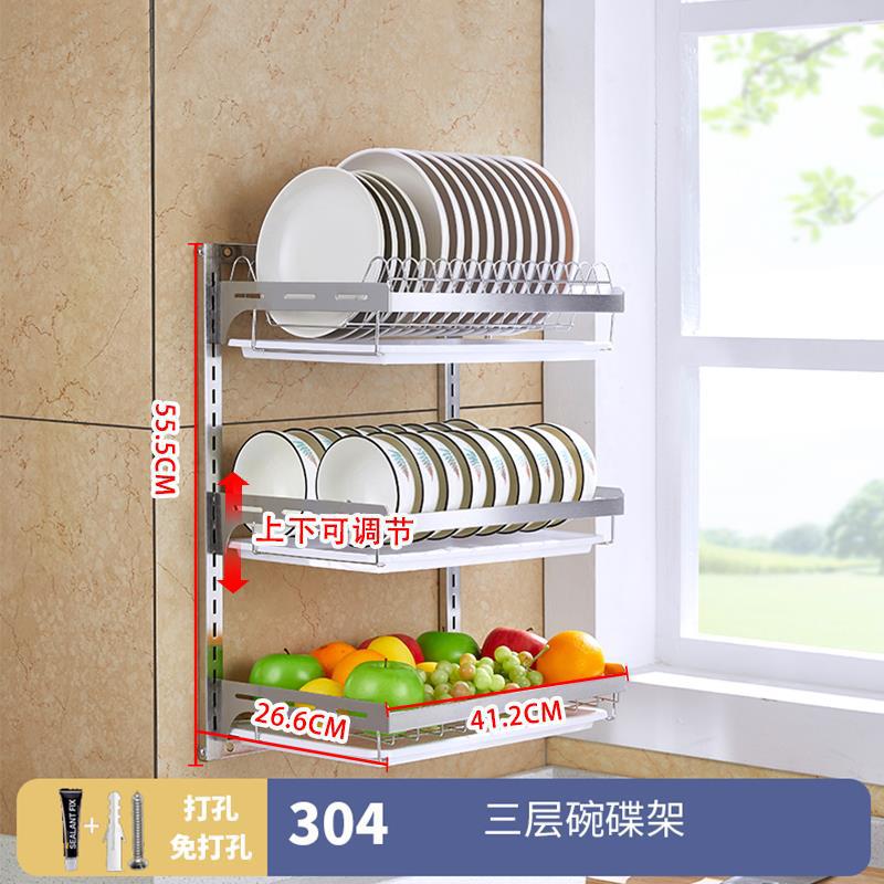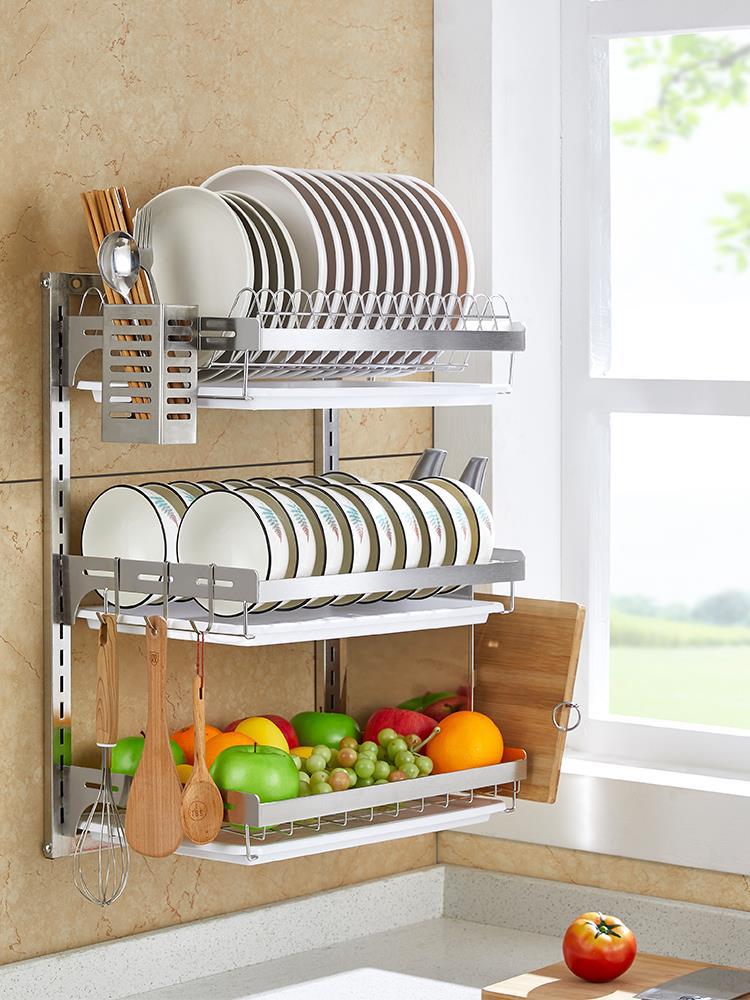 스테인레스 스틸 접시 랙 벽걸이 형 접시 랙 비 펀치 그릇 및 젓가락 캐비닛 과일 및 야채 보관 배수 랙 주방 수납 랙스토어 가기