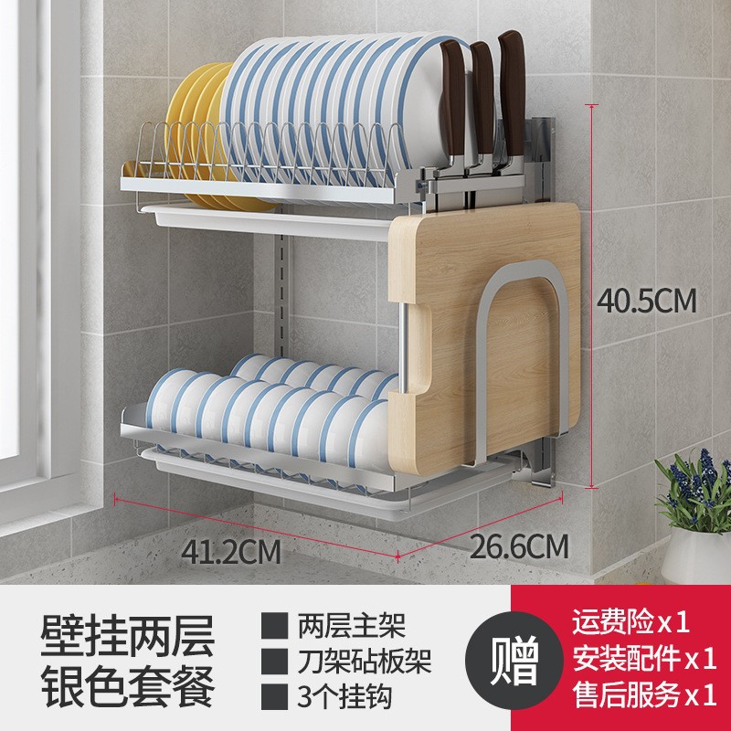 • 교수형 벽 실버 2 층 + 젓가락 케이지 + 칼 도마 선반