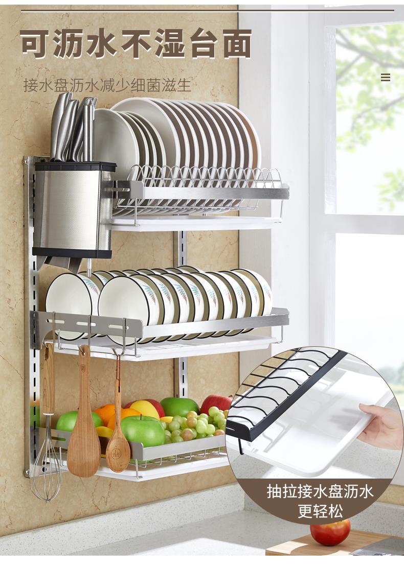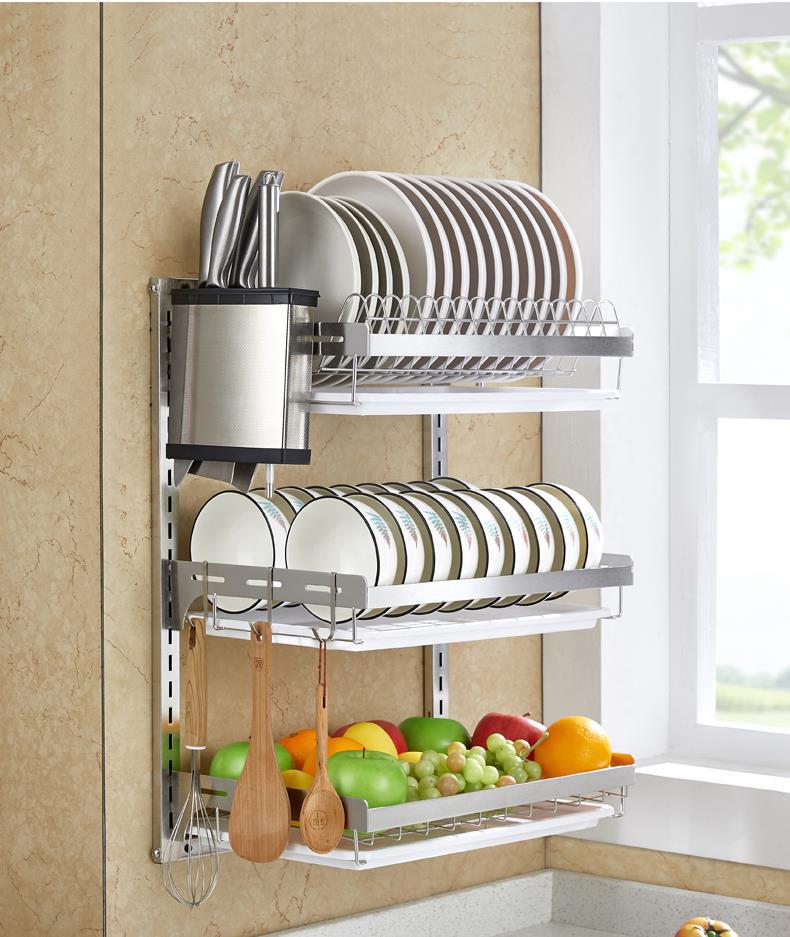 스테인레스 스틸 접시 랙 벽걸이 형 접시 랙 비 펀치 그릇 및 젓가락 캐비닛 과일 및 야채 보관 배수 랙 주방 수납 랙