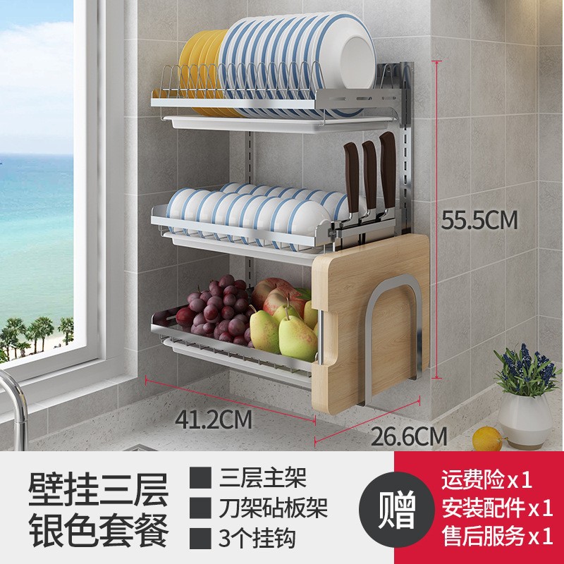 • 교수형 벽 실버 3 층 + 젓가락 케이지 + 칼 도마 랙