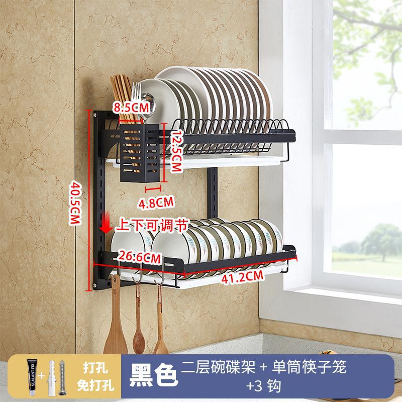 • 벽걸이 형 실버 2 층 접시 랙 + 젓가락 케이지