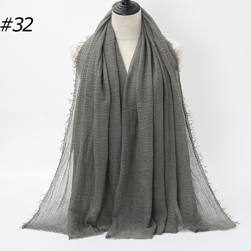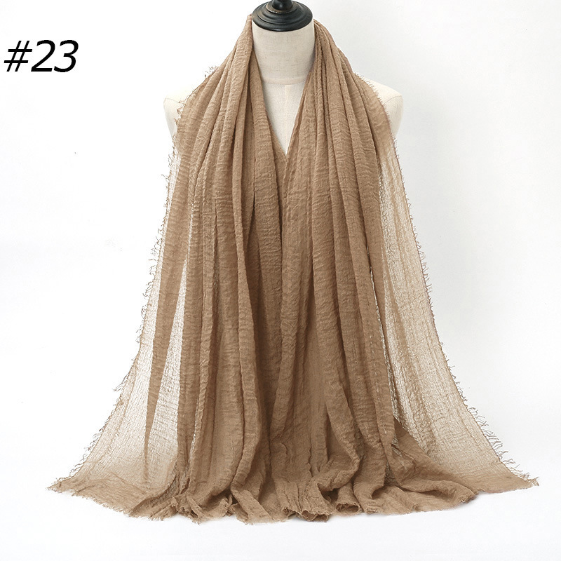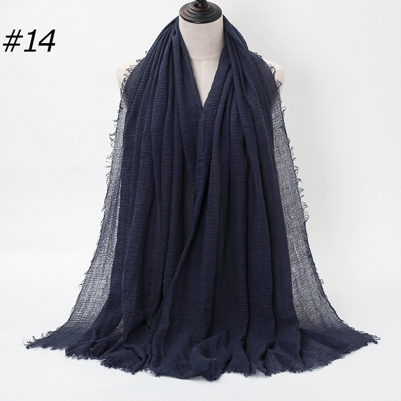 단색 심플 내추럴 주름진 면마 소재 여성용 머리 스카프, 테슬 마감, 주름진 단색 면 스카프, 다용도스토어 가기