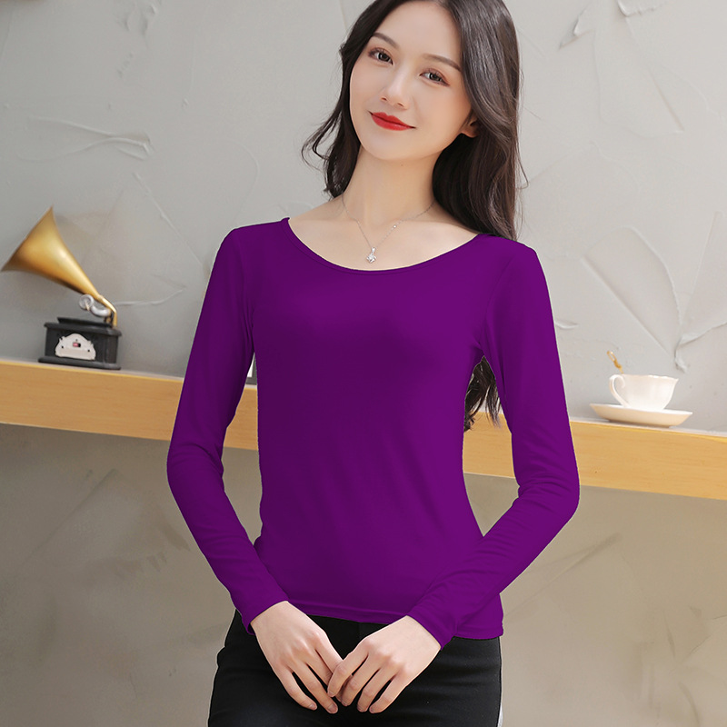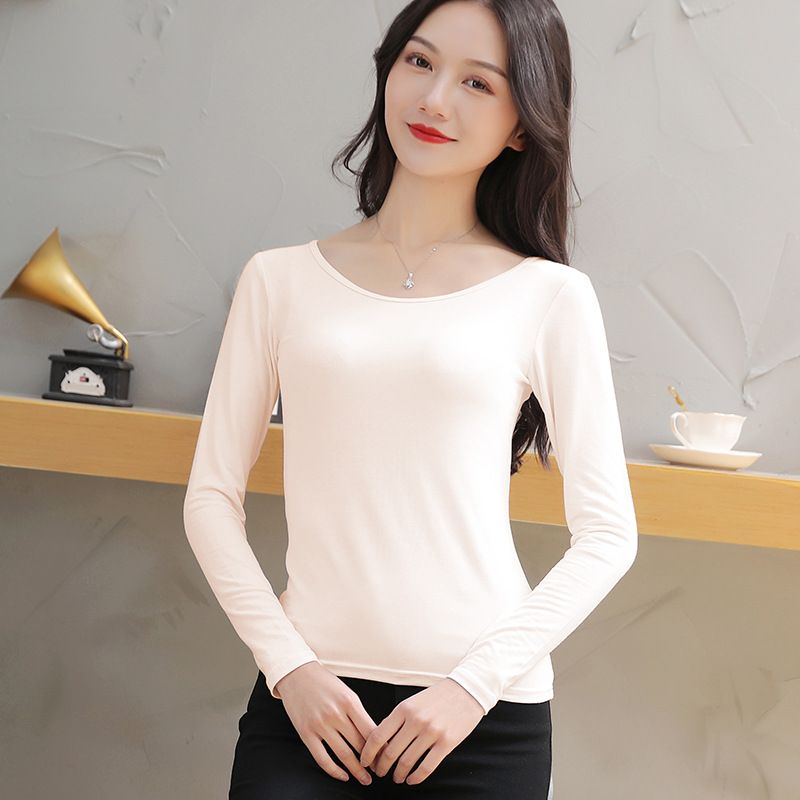 모달 베이스 레이어 라지 라운드 넥 슬림핏 이너 레이어 블랙 티셔츠 가을 겨울 얇은 여성 긴팔 가을 옷 신상