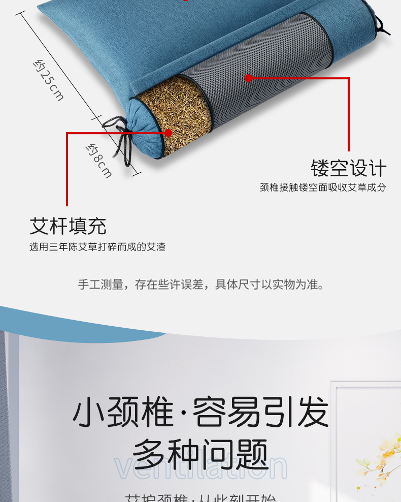가열 뜨거운 압축 쑥쑥 결합 된 베개 자궁 경부 척추 보호 결합 베개 분리 가능한 자궁 경부 척추 베개 가정용 쑥 베개 도매