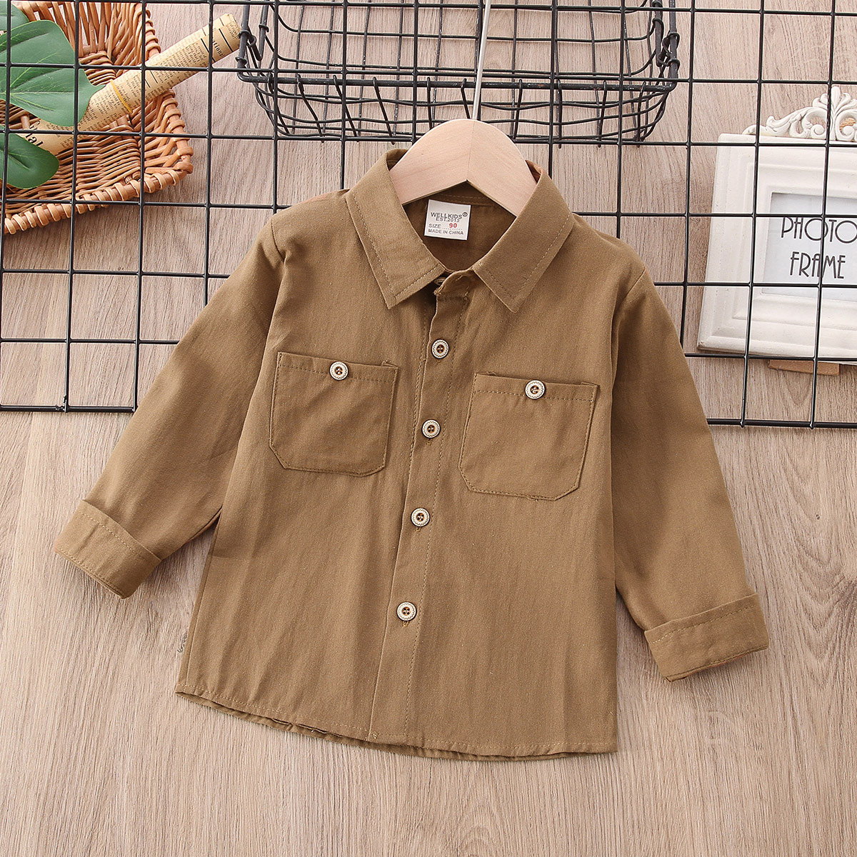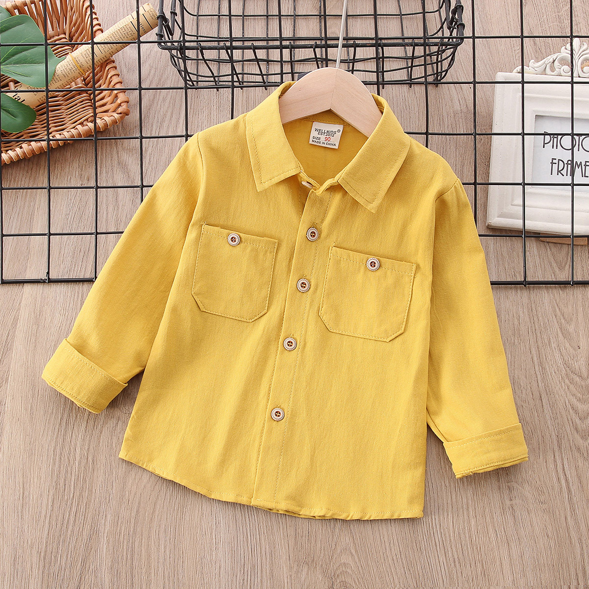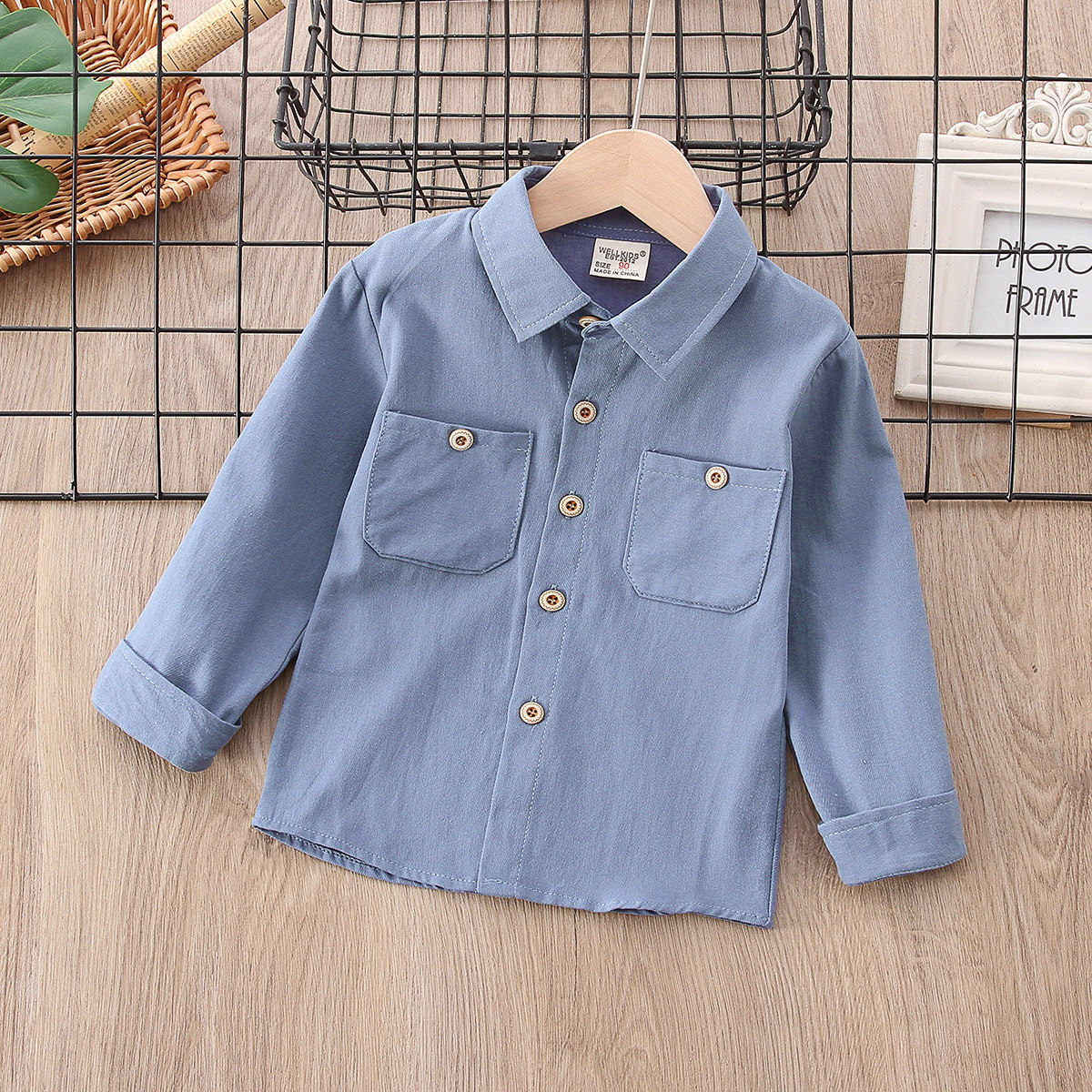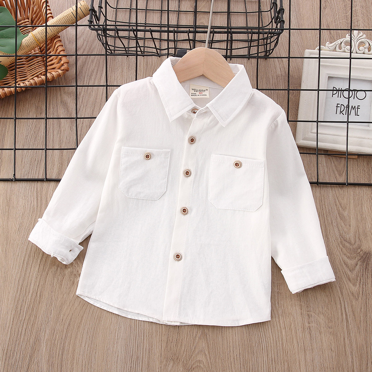 2022 봄과 가을 새로운 어린이 하이 퀄리티 면 긴 소매 셔츠 중소 아기 단색 흰색 셔츠 소년의 잘 생긴 옷