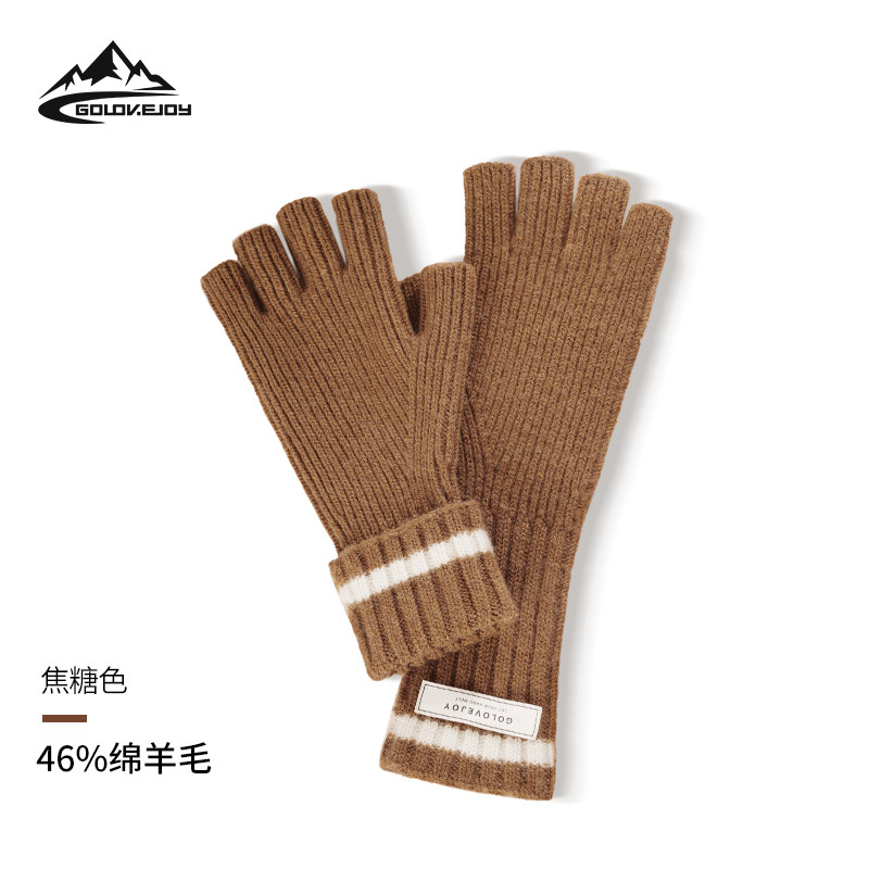 2023 새로운 니트 반 손가락 장갑 여자의 가을과 겨울 두꺼운 방풍 따뜻한 한국 스타일 울 유행 귀여운 장갑스토어 가기