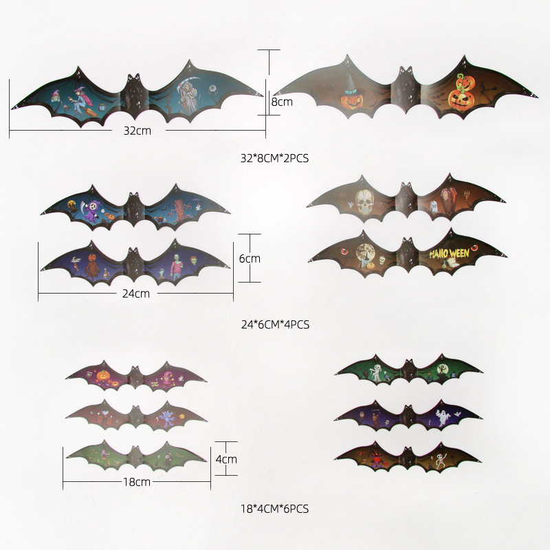 국경 간 도매 3D 스테레오 박쥐 거미 유령 벽 스티커 휴일 파티 문 및 창 할로윈 장식 12