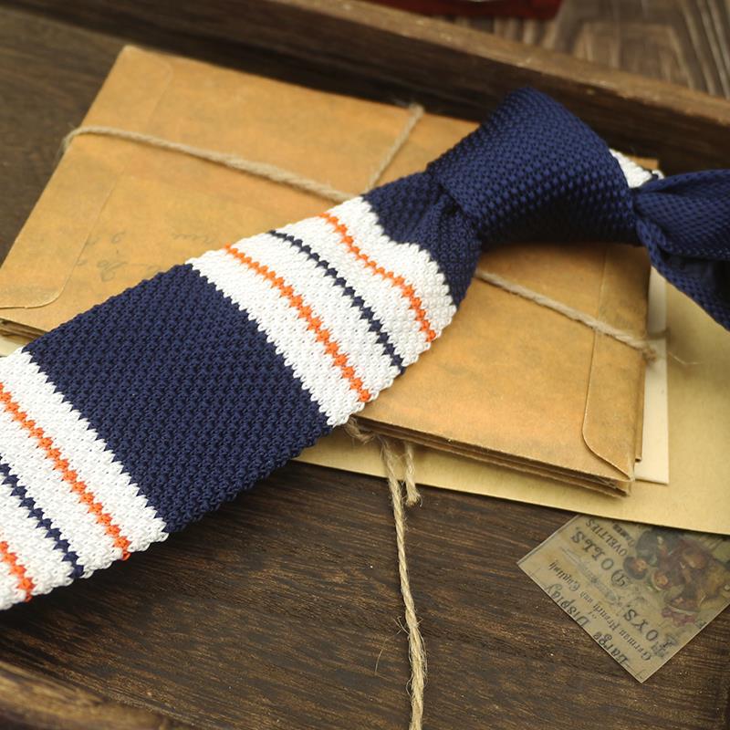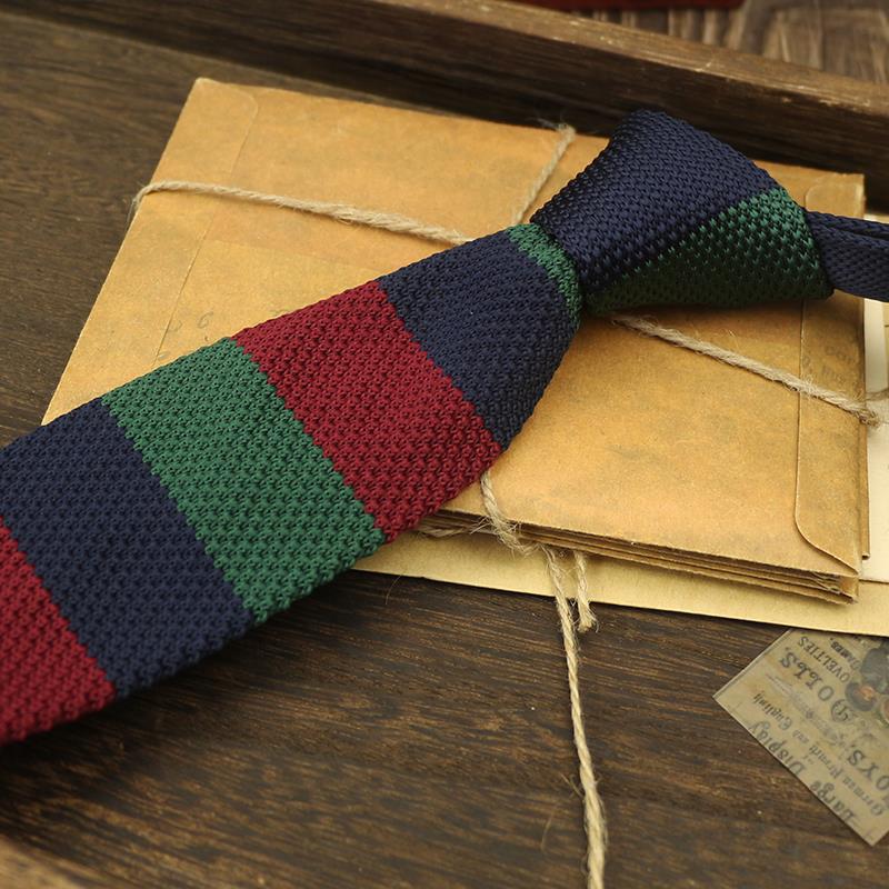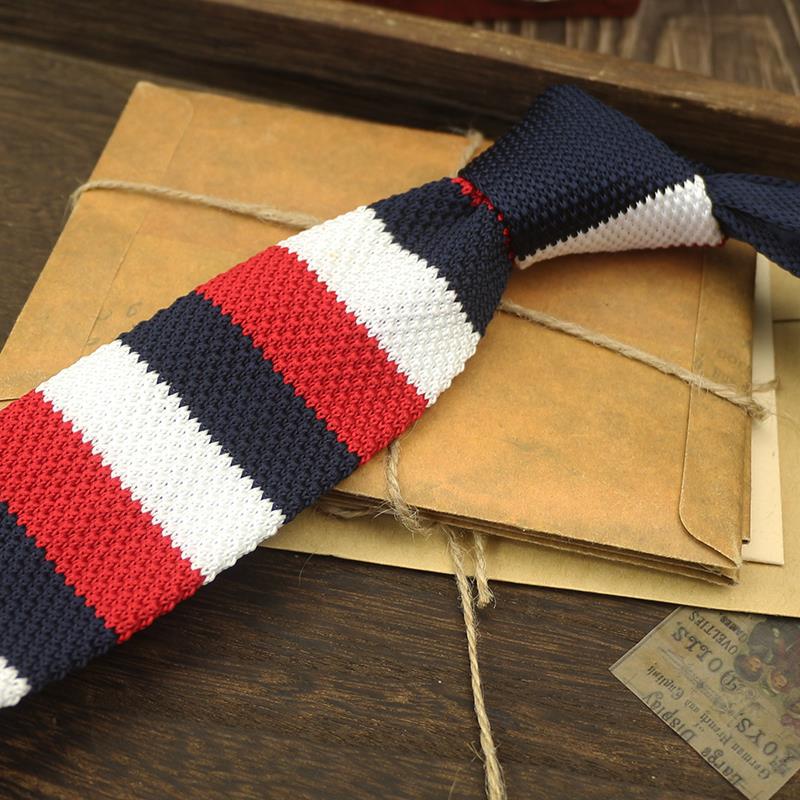 넥타이 남자의 좁은 판 울 한국 스타일 캐주얼 영국 아카데미 스타일 6cm 니트 플랫 헤드 독특한 블루 사이드 바 카키