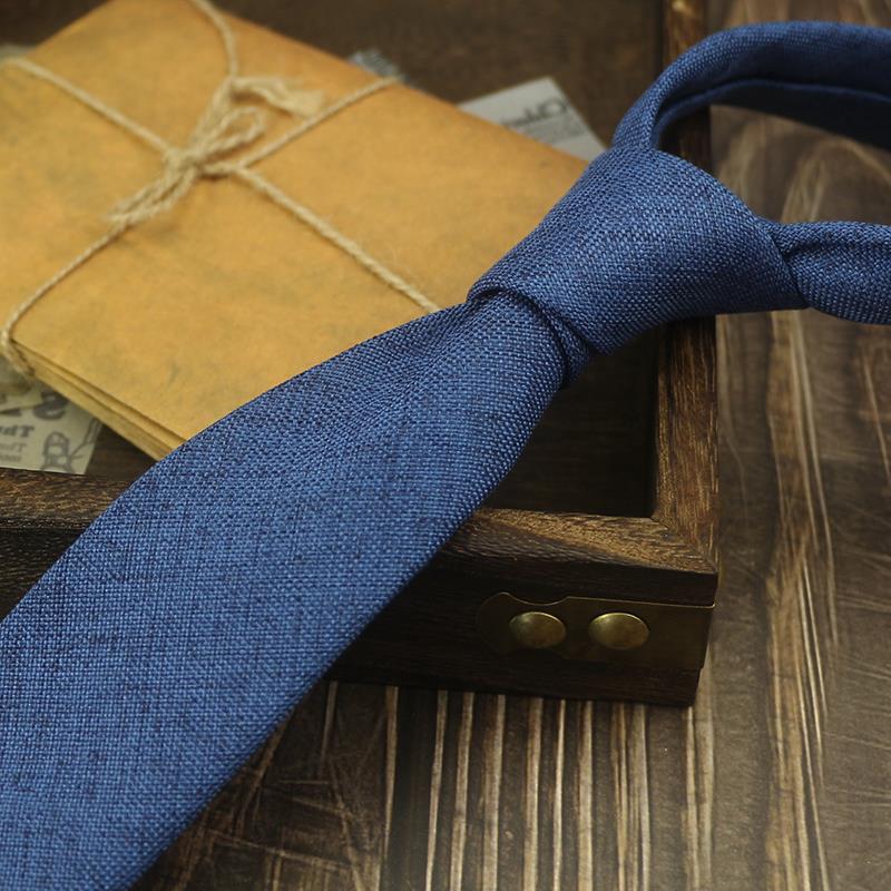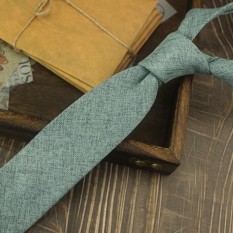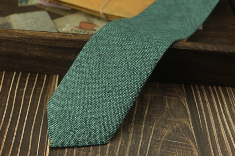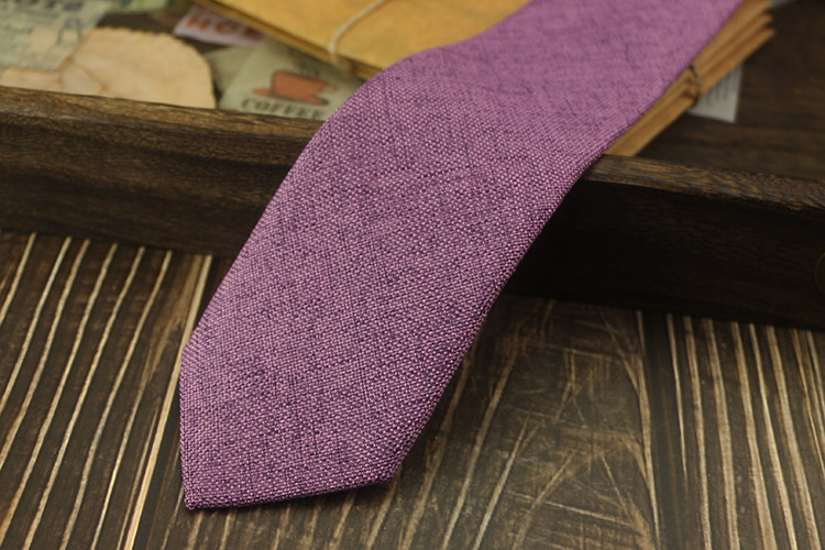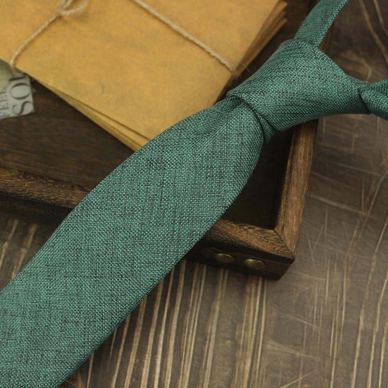넥타이 남자의 한국식 캐주얼 6cm 좁은 단색 비즈니스 원피스 프로 모든 경기 학생 모조 린넨 독특한 녹색 보라색스토어 가기