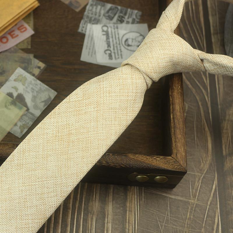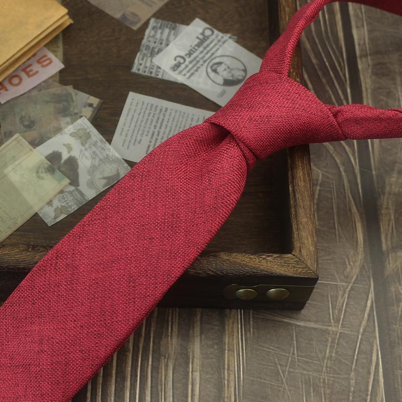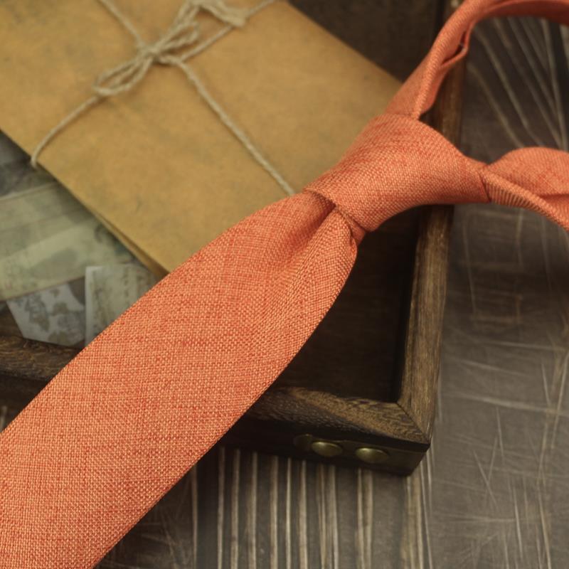 넥타이 남자의 한국식 캐주얼 6cm 좁은 단색 비즈니스 원피스 프로 모든 경기 학생 모조 린넨 독특한 녹색 보라색