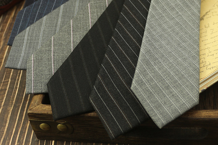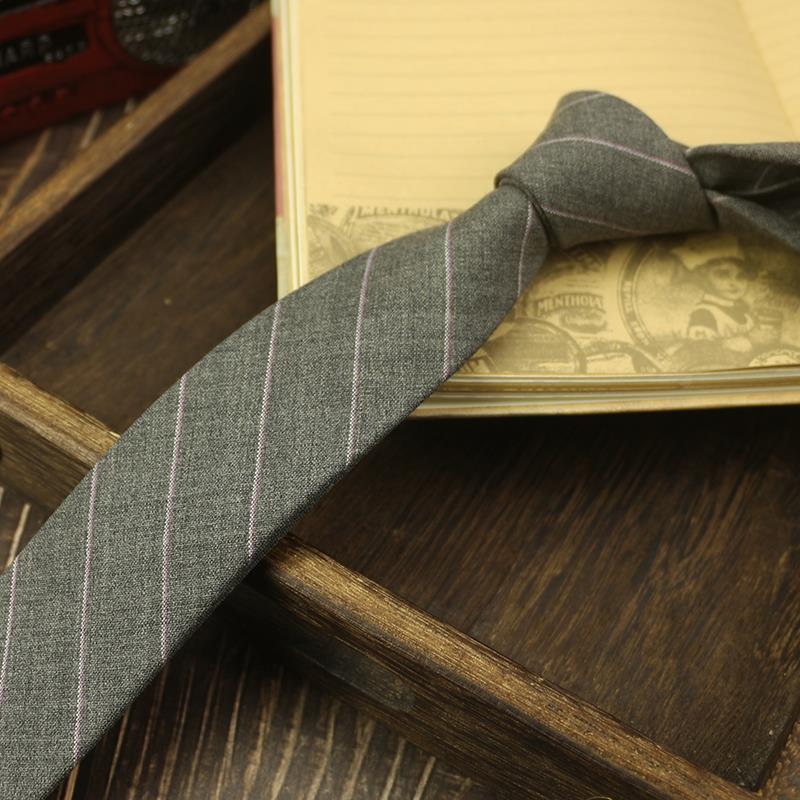 넥타이 남자의 좁은 캐주얼 6cm 복고풍 영국 스타일 울 그레이 스트라이프 비즈니스 원피스 블루 모든 일치 블랙스토어 가기