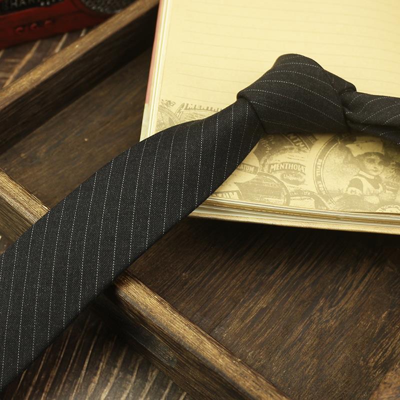 넥타이 남자의 좁은 캐주얼 6cm 복고풍 영국 스타일 울 그레이 스트라이프 비즈니스 원피스 블루 모든 일치 블랙