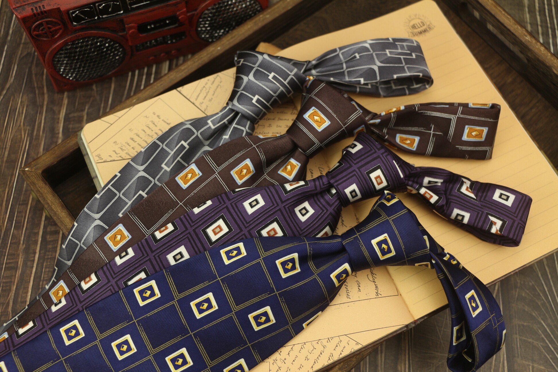 넥타이 남성 캐주얼 뽕나무 실크 인쇄 여성의 보라색 격자 무늬 10CM 복고풍 홍콩 스타일 예술적 영국 공식 착용 파란색