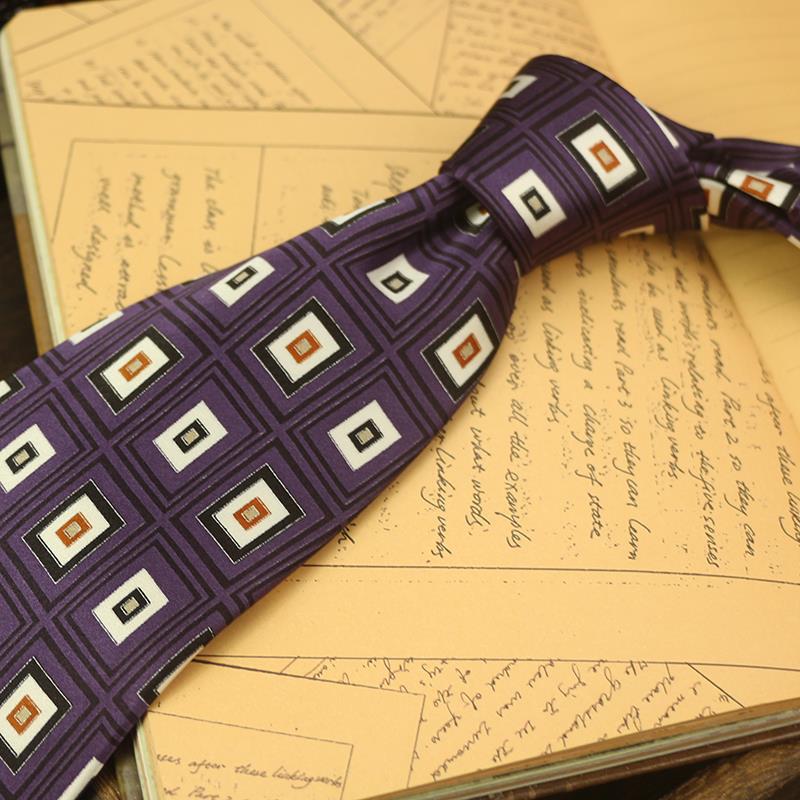 넥타이 남성 캐주얼 뽕나무 실크 인쇄 여성의 보라색 격자 무늬 10CM 복고풍 홍콩 스타일 예술적 영국 공식 착용 파란색스토어 가기