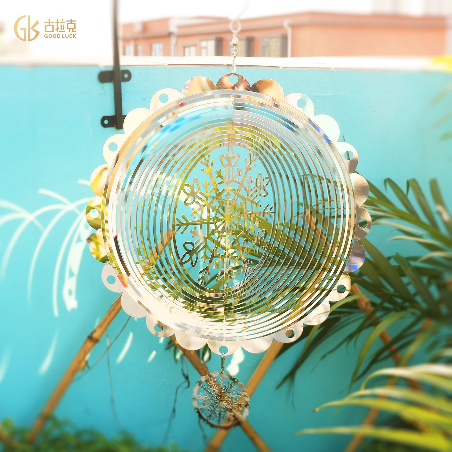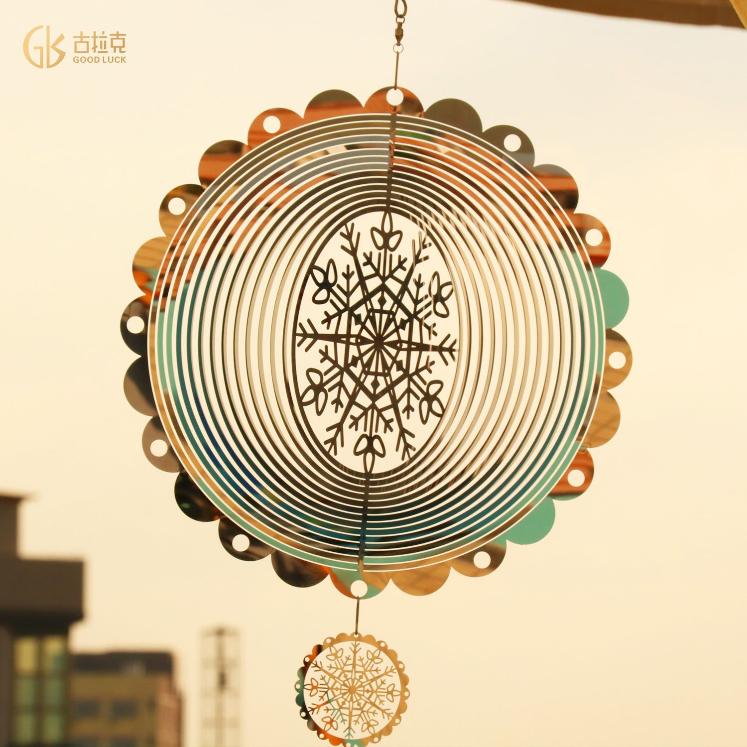 아마존 크로스보더 3D 만다라 스타일 금속 풍경 장식품 정원 마당 크리스마스 눈송이 장식 풍경종