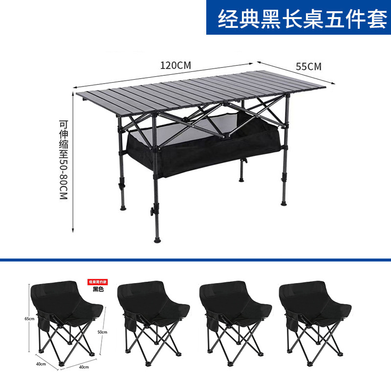 • 1.2m 블랙 롱 테이블 + 블랙 문 체어 4개 + 수납 가방