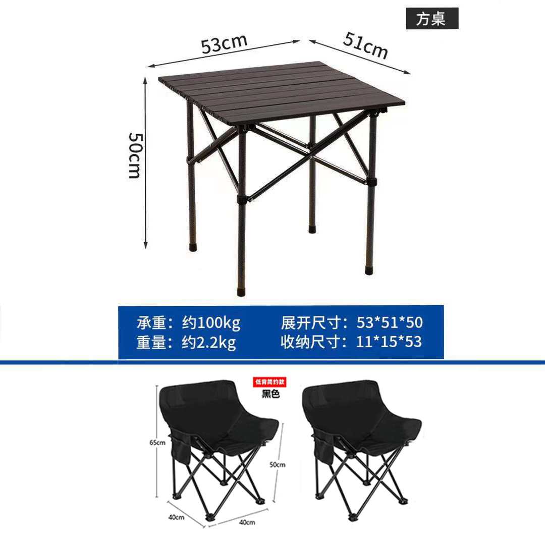 • 블랙 사각 테이블 + 블랙 문 체어 2개 + 수납 가방