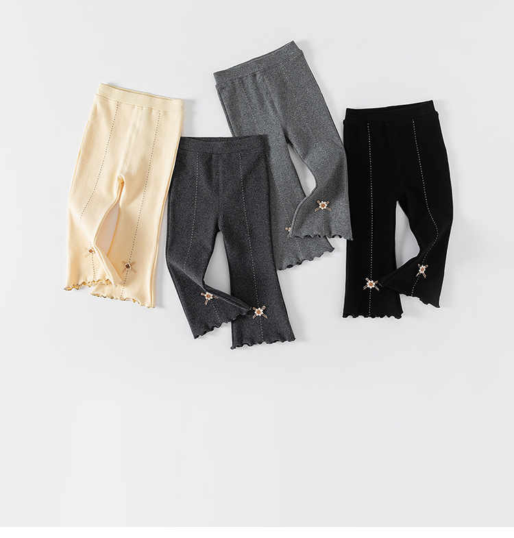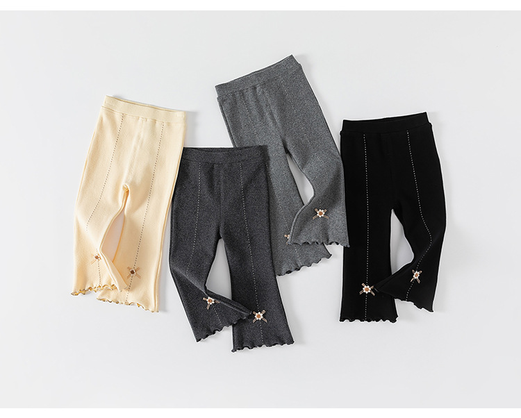유바오 아동복 여아 한국 스타일 신축성 니트 여아 레깅스 봄 가을 유아용 긴바지 나팔바지 아기 바지