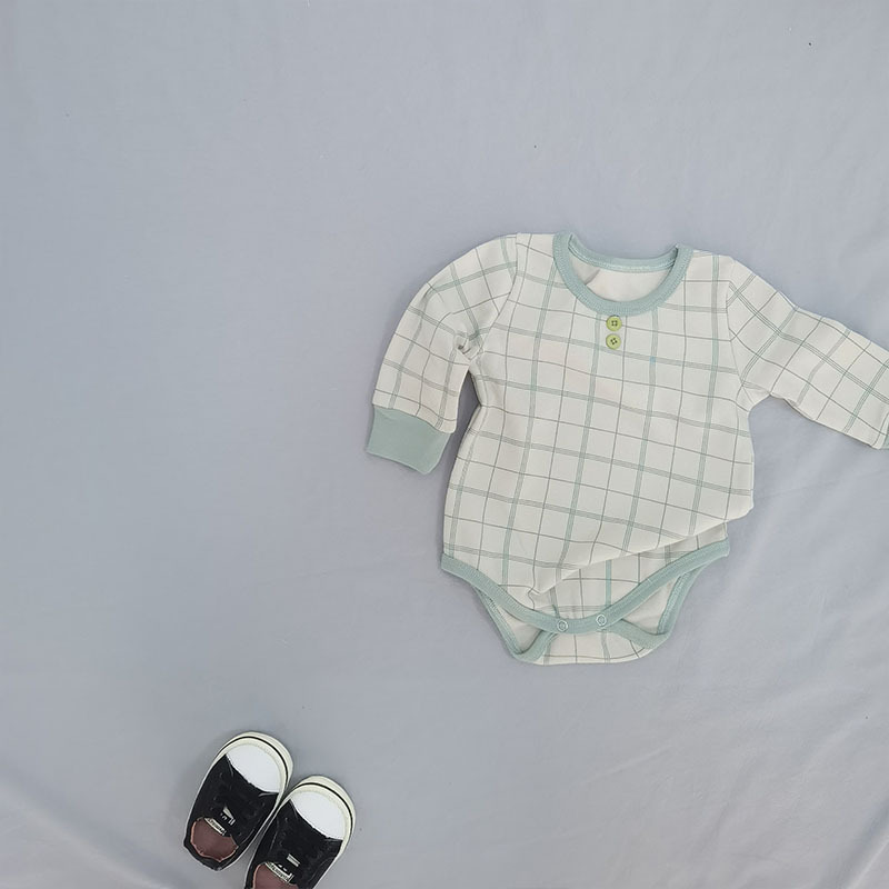 한국 스타일 아동복 아기와 유아 컬러 블록 체크 긴팔 홈 세트 아기 따뜻한 높은 허리 홈 투피스 세트