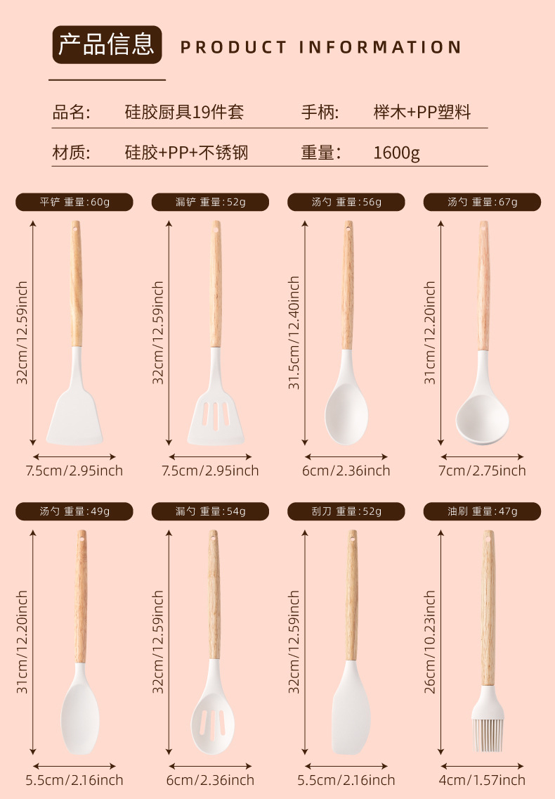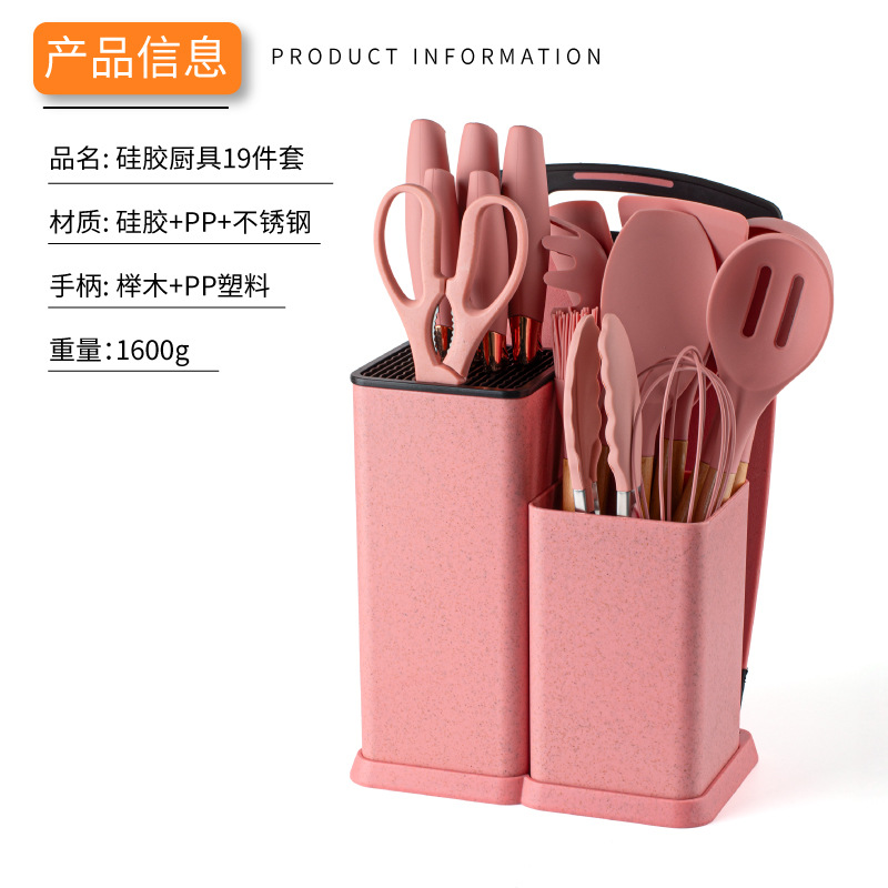 실리콘 주방 용품 세트 19 조각 칼 세트 세트 저장 배럴 밀 짚 색상 세트 칼 홀더 보관 랙