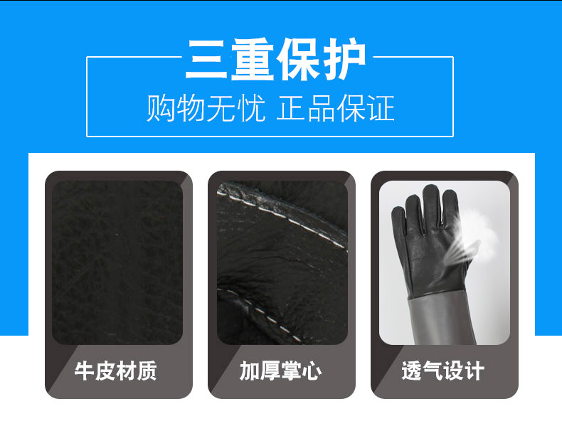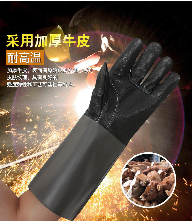 재고 도매 비 개방 두꺼운 소가죽, 단열, 고온 저항, 절단 방지, 노동 보호, 전기 용접기용 긴 장갑스토어 가기