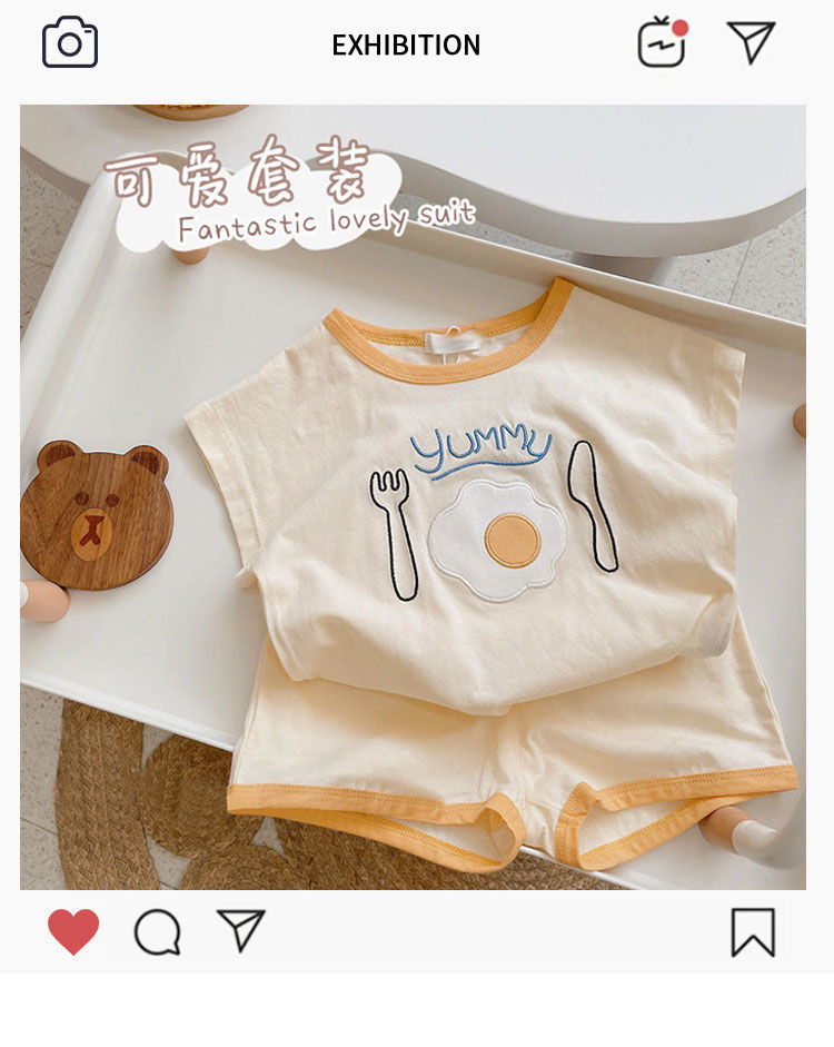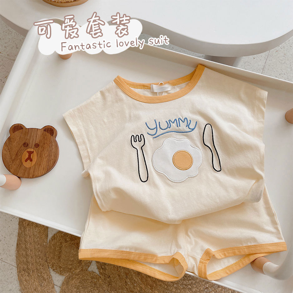 95 면 세트 소년과 소녀 2023 여름 한국식 느슨한 민소매 조끼 아기 얇은 만화 조끼 투피스 세트스토어 가기
