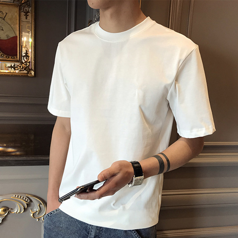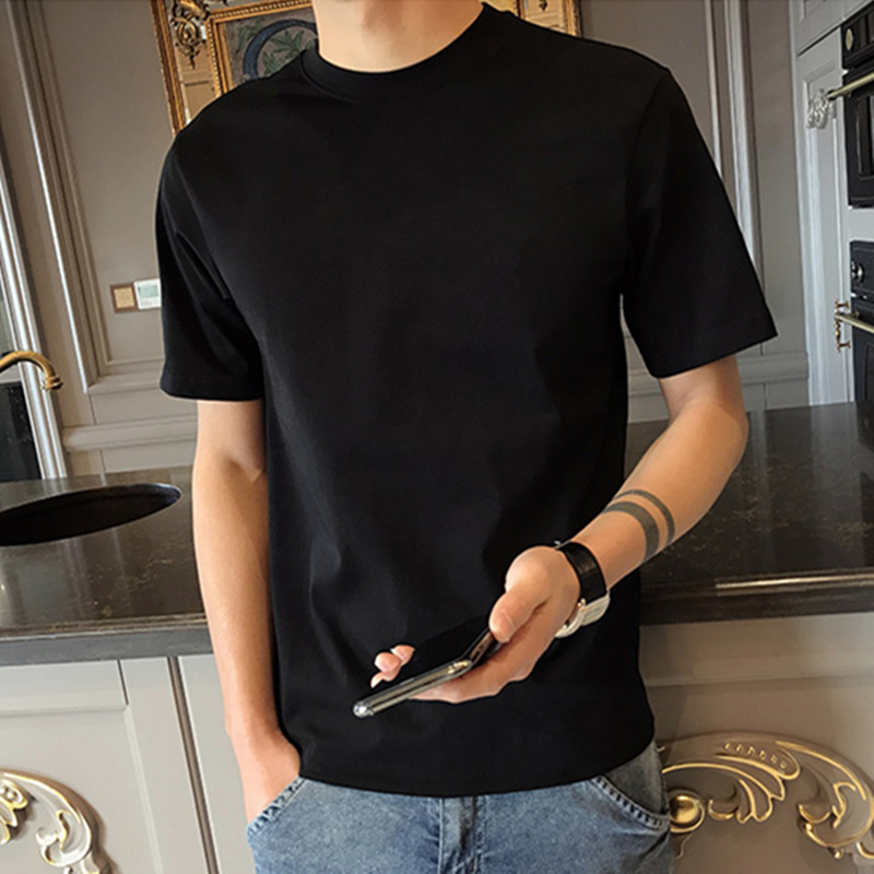 여름 새 남성용 반팔 티셔츠 라운드넥 한국식 슬림핏 캐주얼 베이스 셔츠 어린 학생용 단색 탑스토어 가기