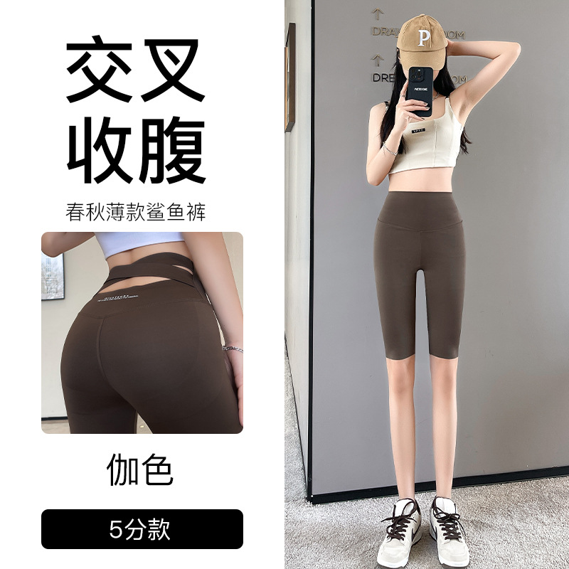 브라운 상어 바지 여성 겉옷 봄, 가을, 여름 얇은 꽉 슬리밍 레깅스 배꼽 제어 엉덩이 리프팅 요가 바비 바지