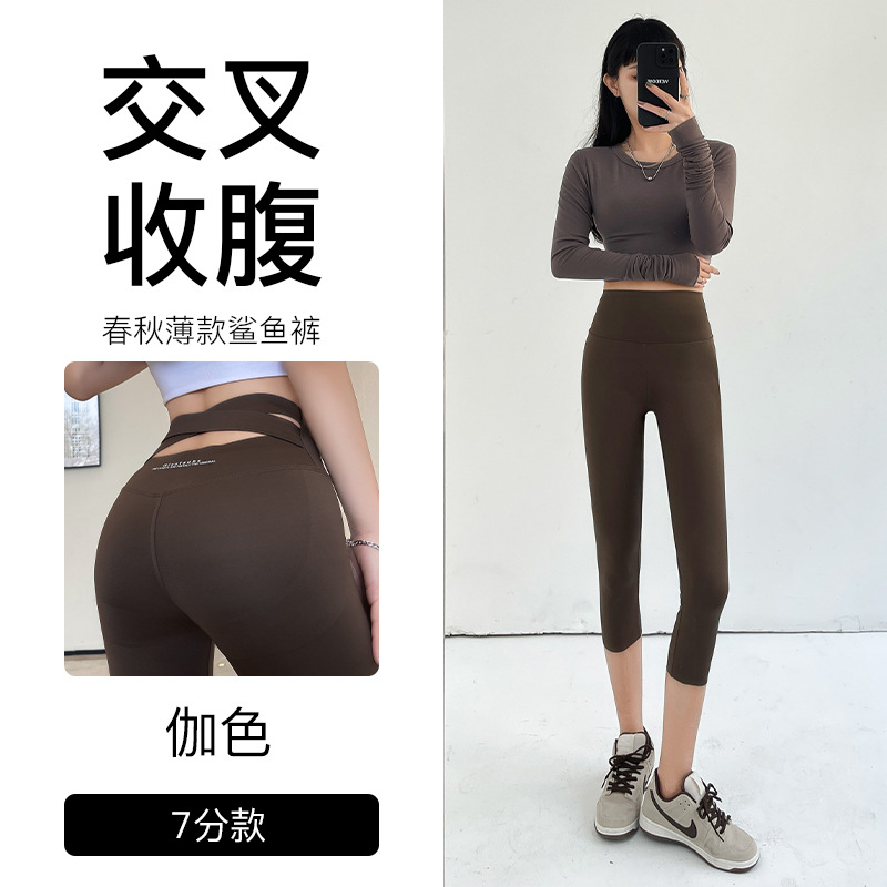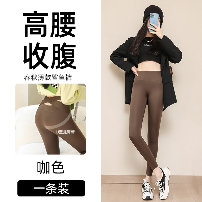 브라운 상어 바지 여성 겉옷 봄, 가을, 여름 얇은 꽉 슬리밍 레깅스 배꼽 제어 엉덩이 리프팅 요가 바비 바지스토어 가기