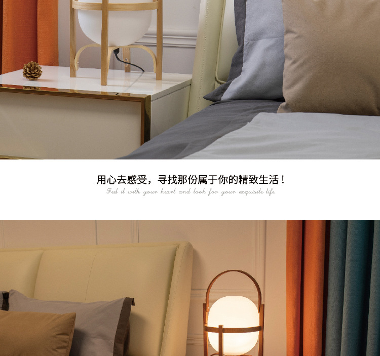 북유럽 단단한 나무 바닥 램프 디자이너 바구니 유리 테이블 램프 홈스테이를위한 개인화 된 창조적 인 간단한 일본식 침대 옆 탁자 램프