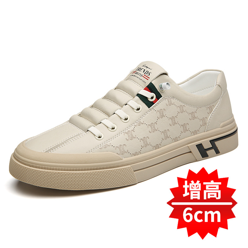 남성용 키높이 운동화 2025 가을 남성 캐주얼 가죽 신발 부드러운 가죽 부드러운 밑창 통기성 좋은 흰색 신발스토어 가기