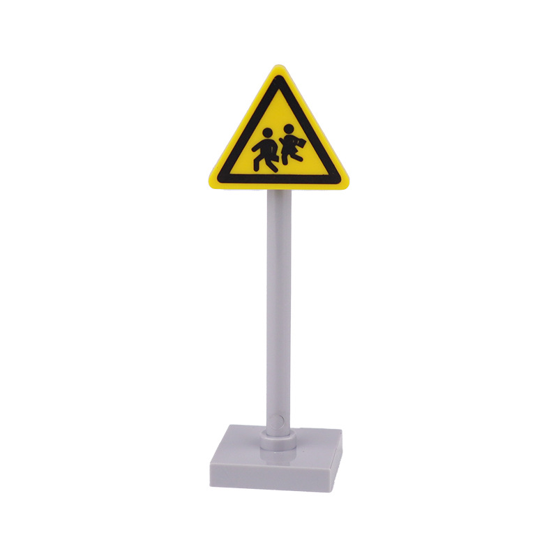 MOC 호환 소형 입자 빌딩 블록, 도시 도로 교통 표지판, 도로 표지판, 경고 표지판, 작은 입자 접합
