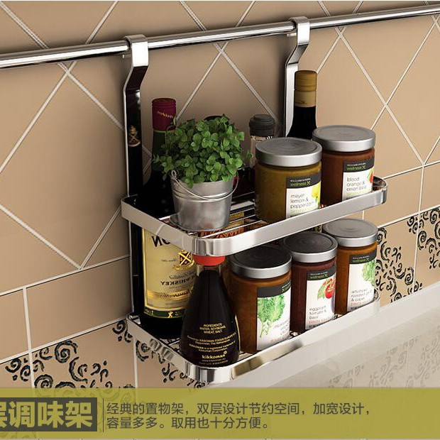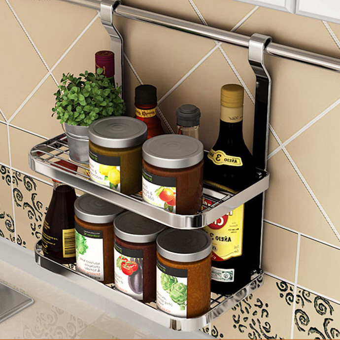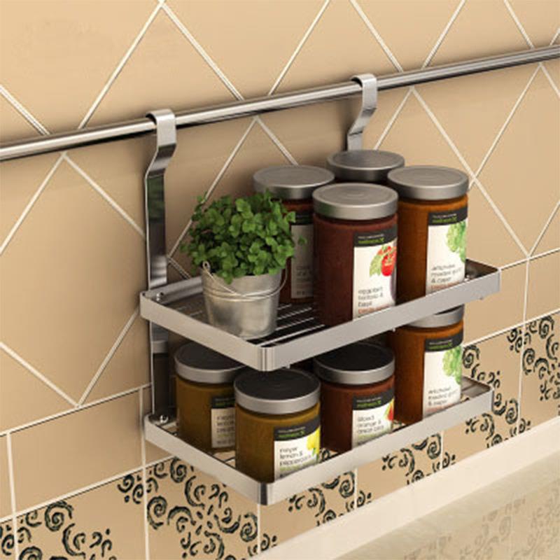 스테인레스 스틸 주방 수납 랙 벽걸이 형 다기능 조미료 랙 2 층 조미료 랙 걸이 주방 용품 보관